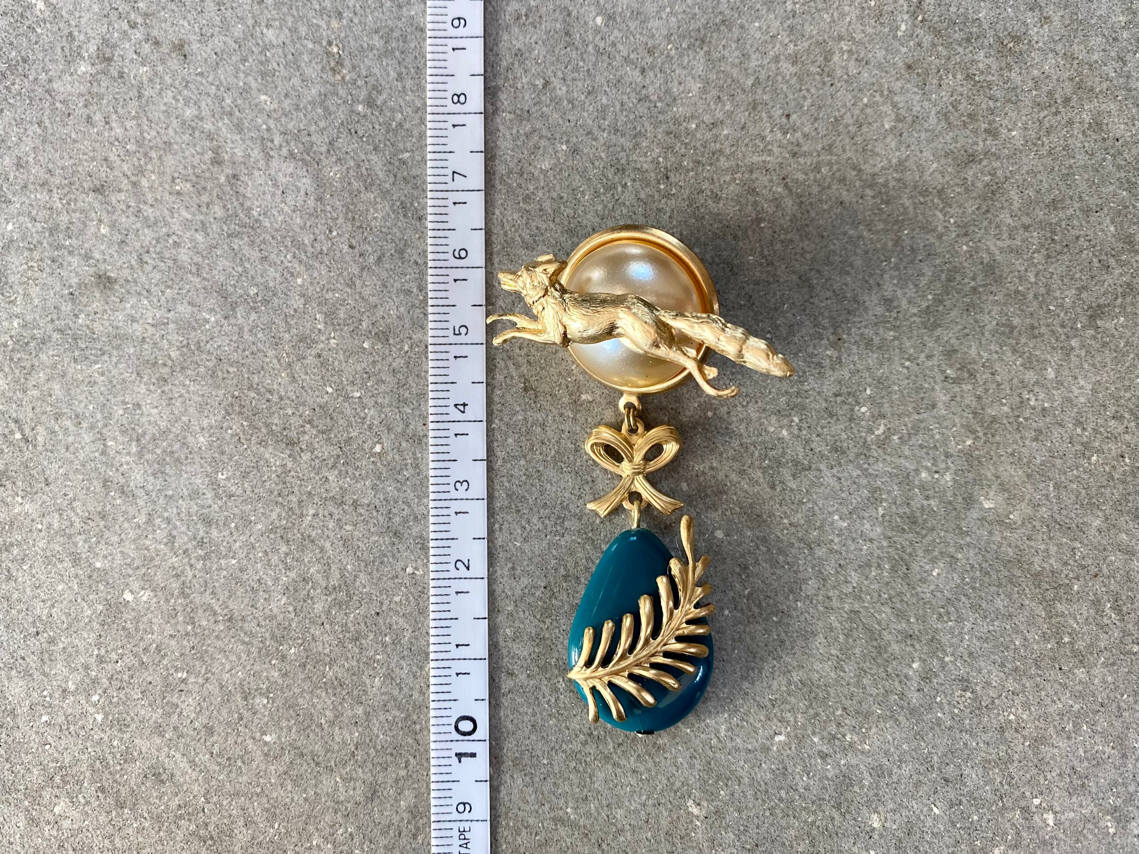 ブルーグリーンのビーズにはボタニカルパーツを添えて、キツネとの相性を高めました。