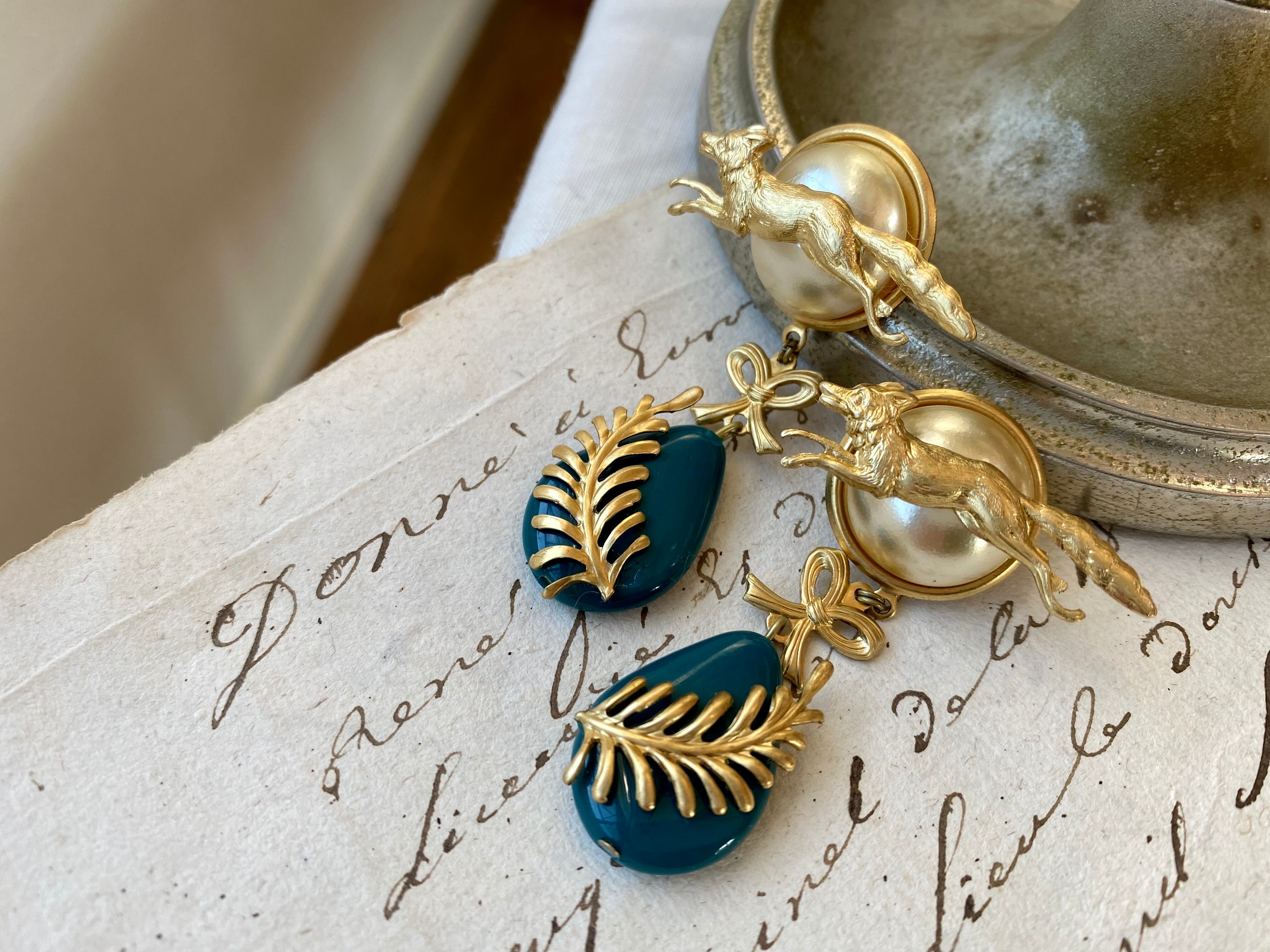 ヴィンテージパーツを組み合わせてピアスを作りました。