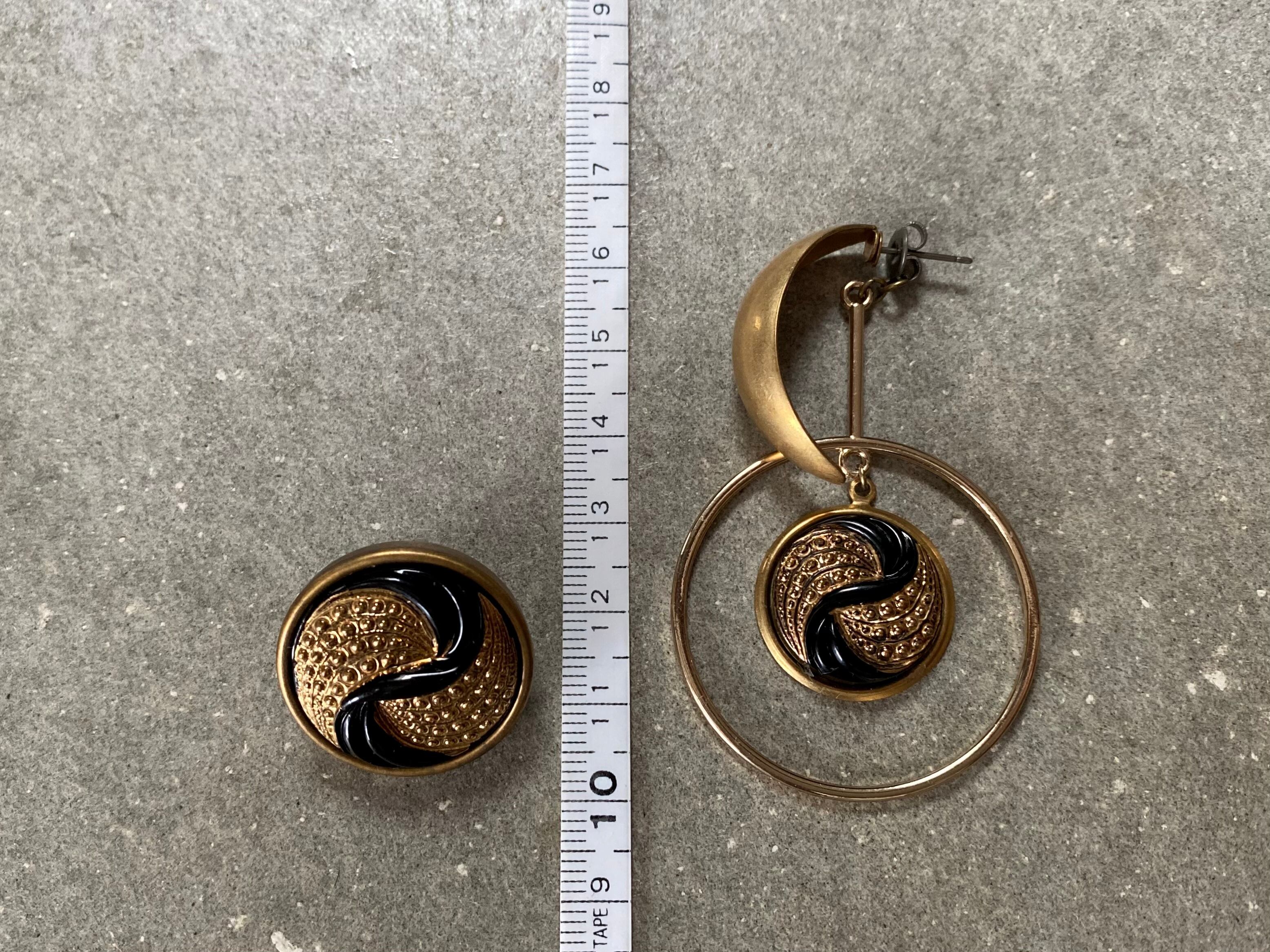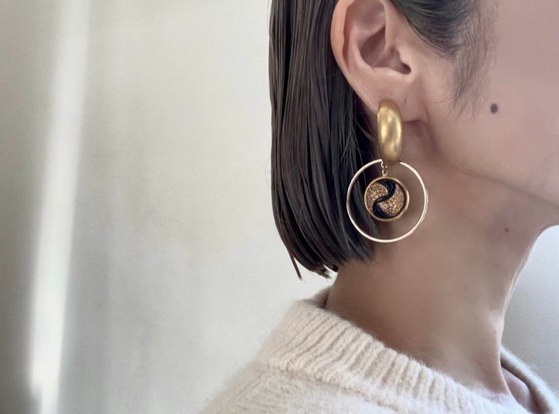ヴィンテージパーツを使用してアシンメトリーなピアスを作りました。