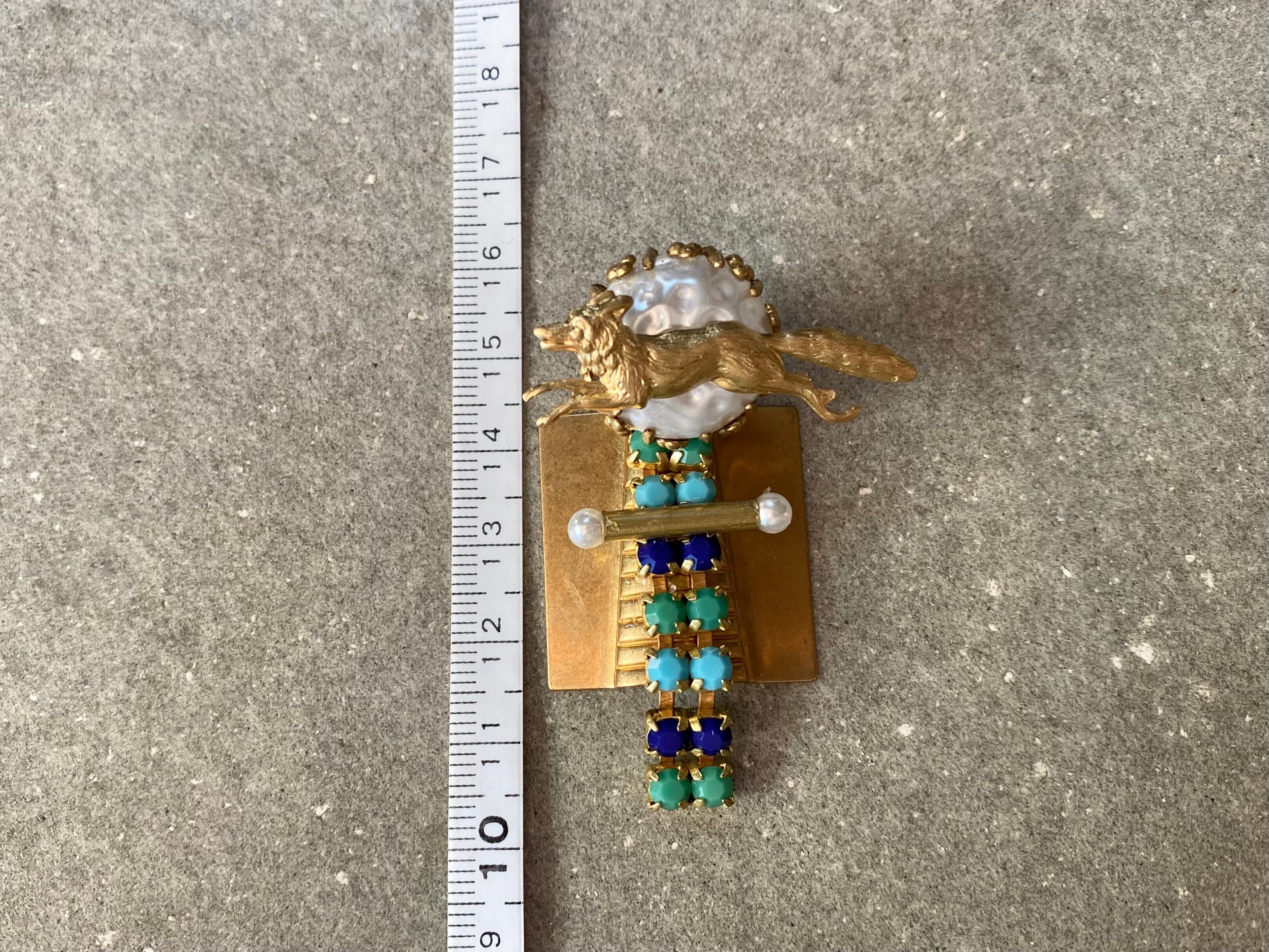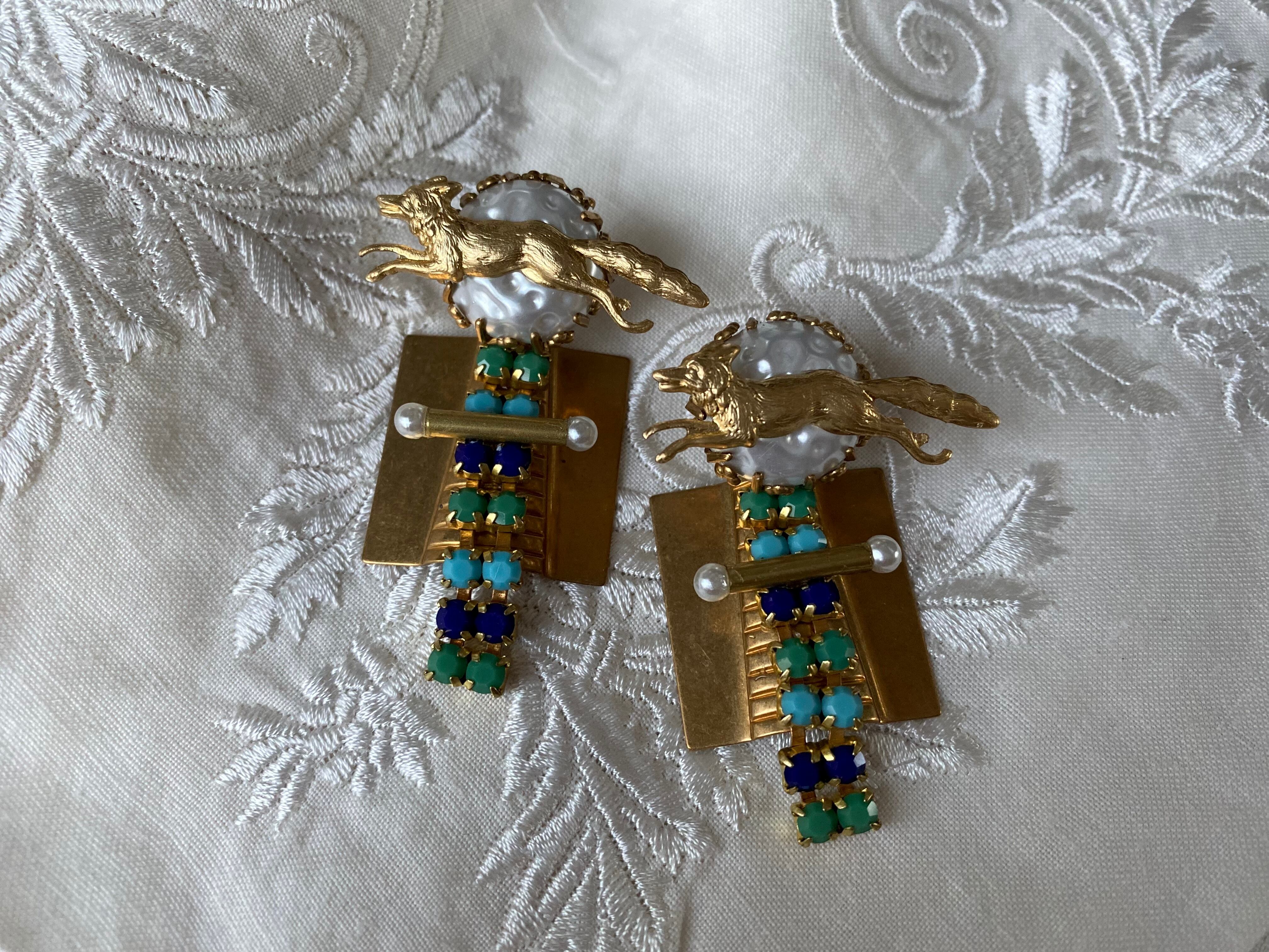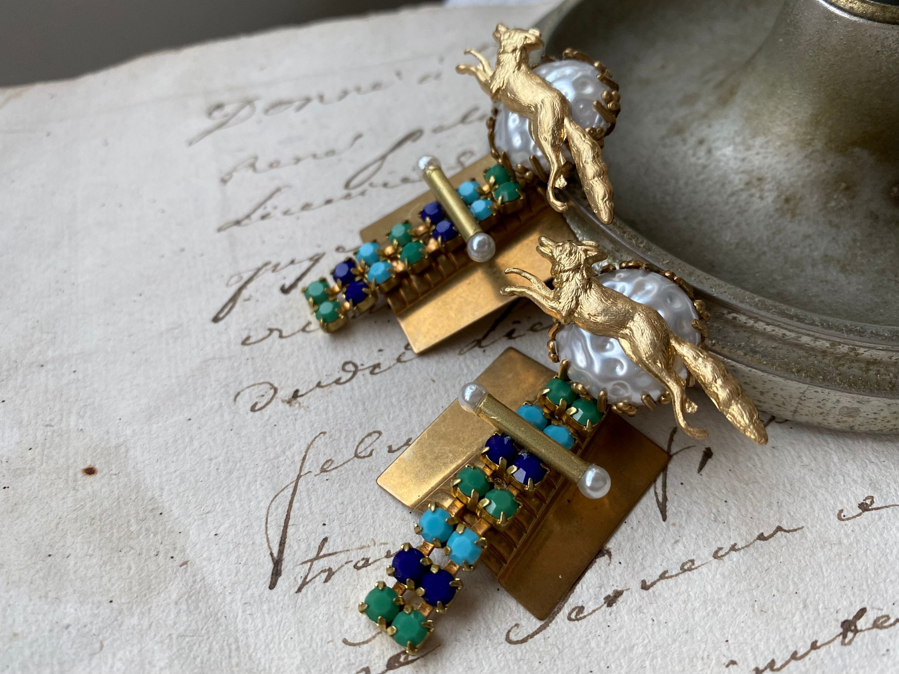 カボションにはガラスパールに真鍮のキツネを添えて、パーツに負けない個性をプラスしました。