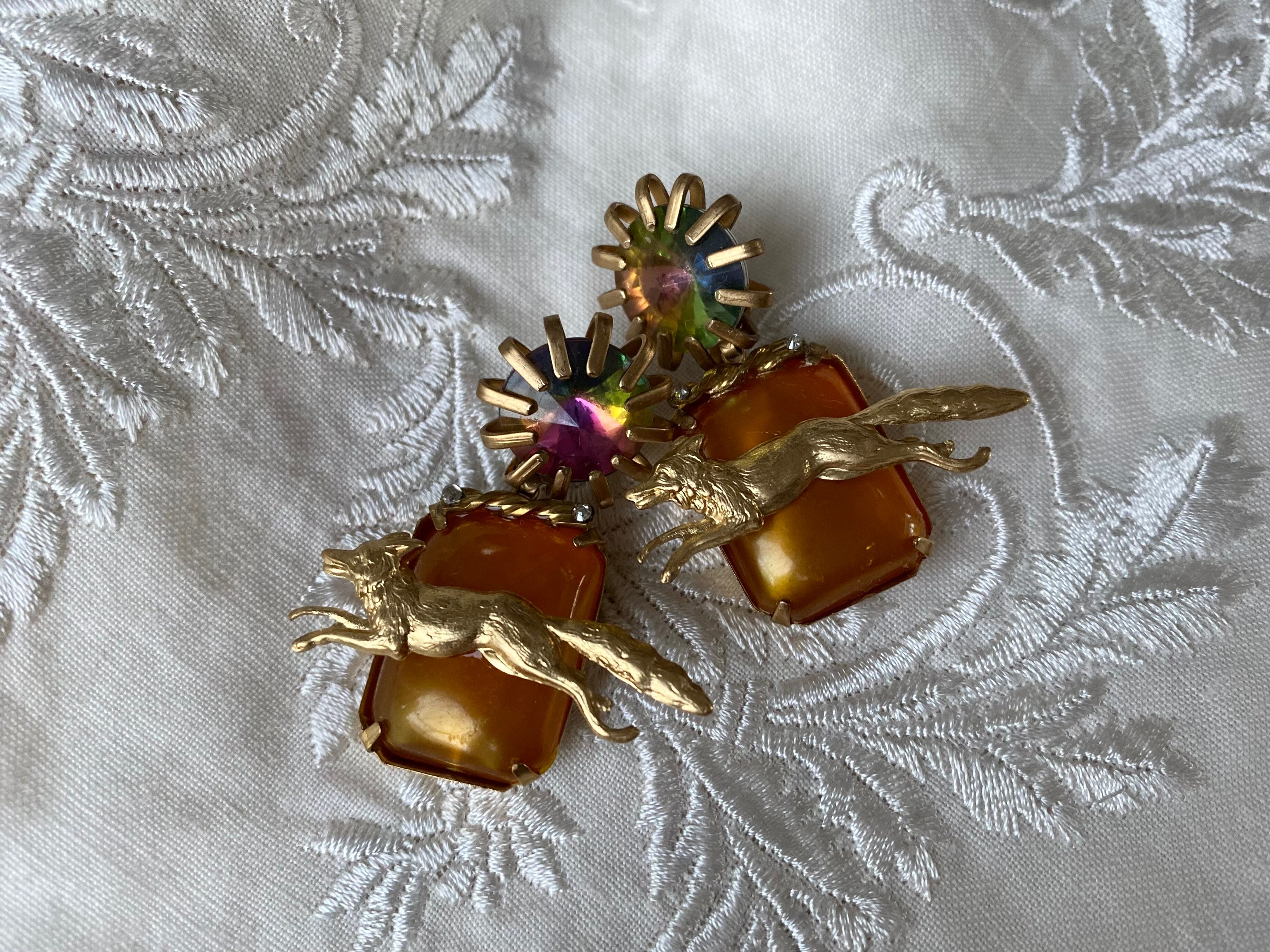 不思議な輝きをもつカボションに蜜色のパーツを合わさって、あたたかな印象です。