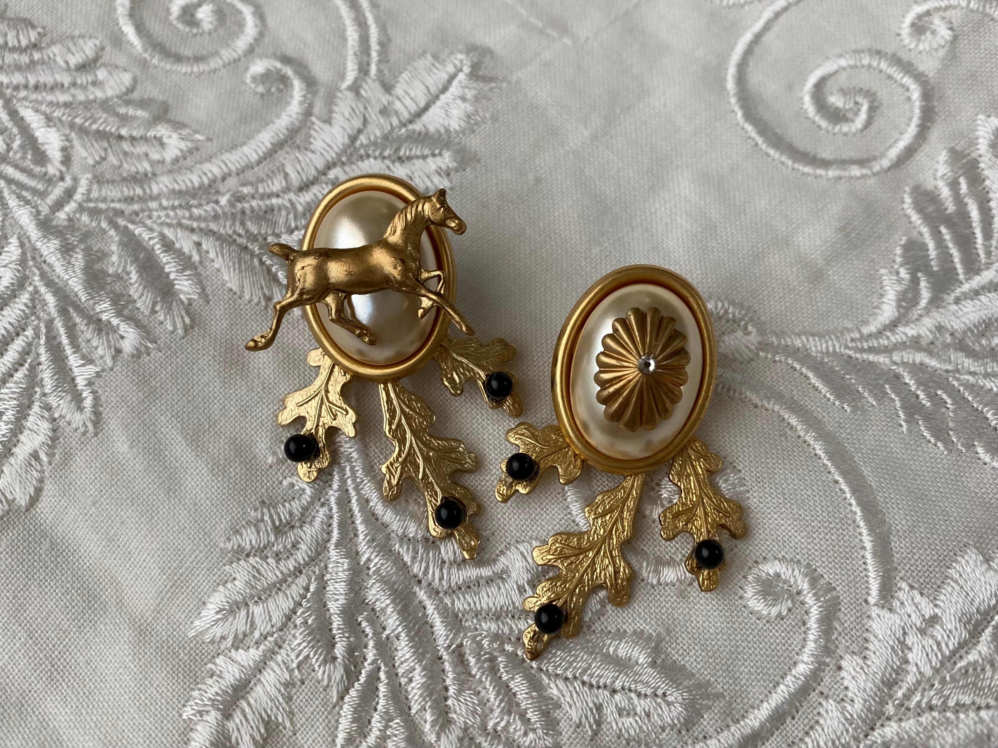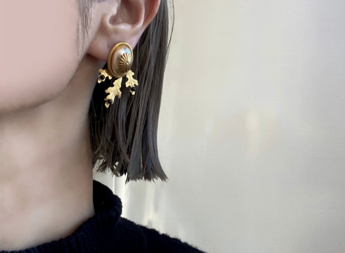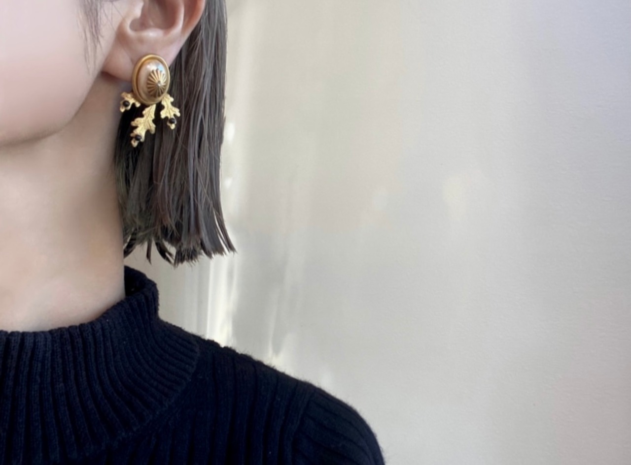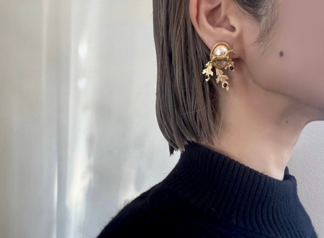 パールと真鍮のボタニカルパーツがクラシカルな印象ですが、真鍮のホースにさり気ない遊び心が感じられます。
