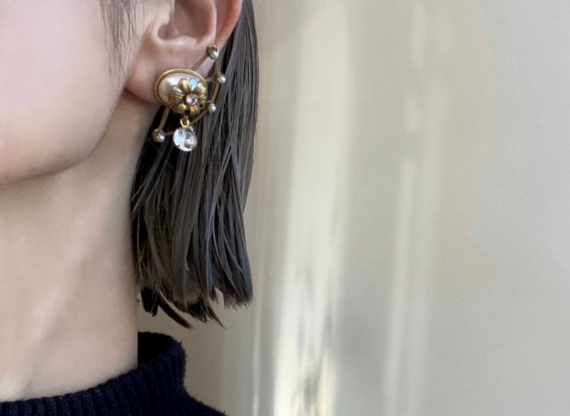 ガラスとパールの組み合わせが繊細な印象ですが、シェイプはシックなデザインで、そのバランスが大人っぽい雰囲気を醸し出しています。