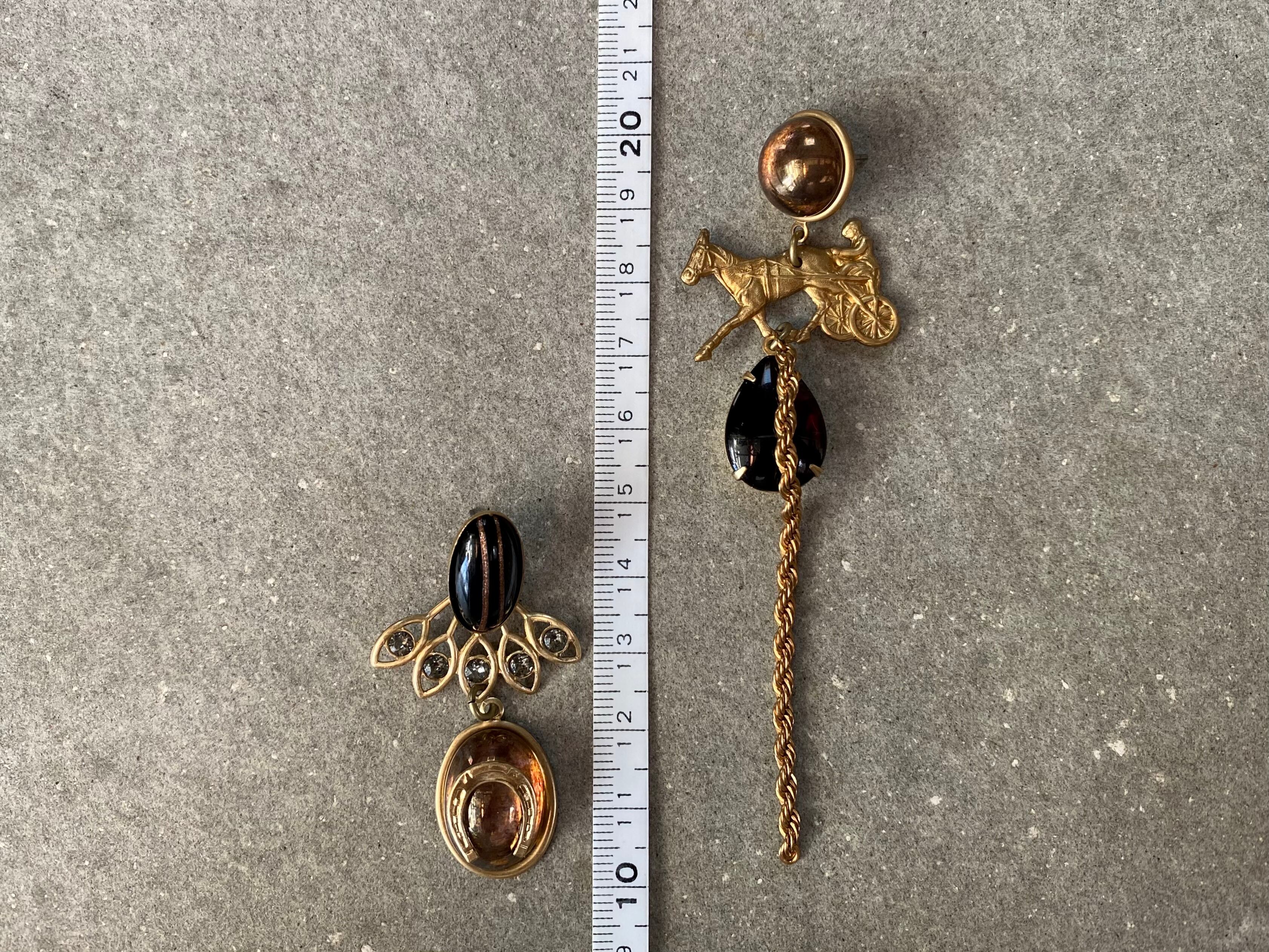 ヴィンテージパーツを使用してアシンメトリーなピアスを作りました。