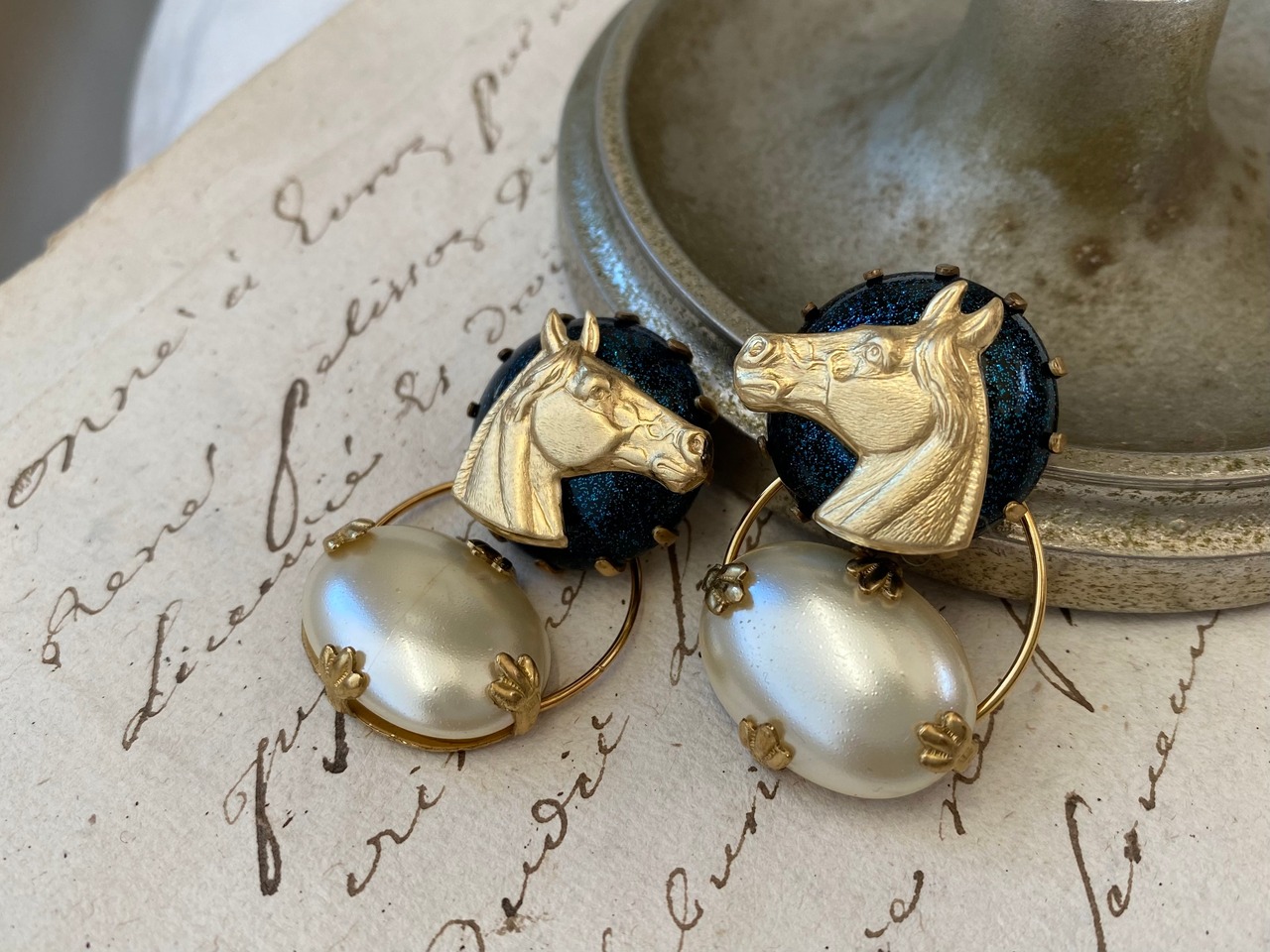 ヴィンテージパーツを使用してピアスを作りました。
