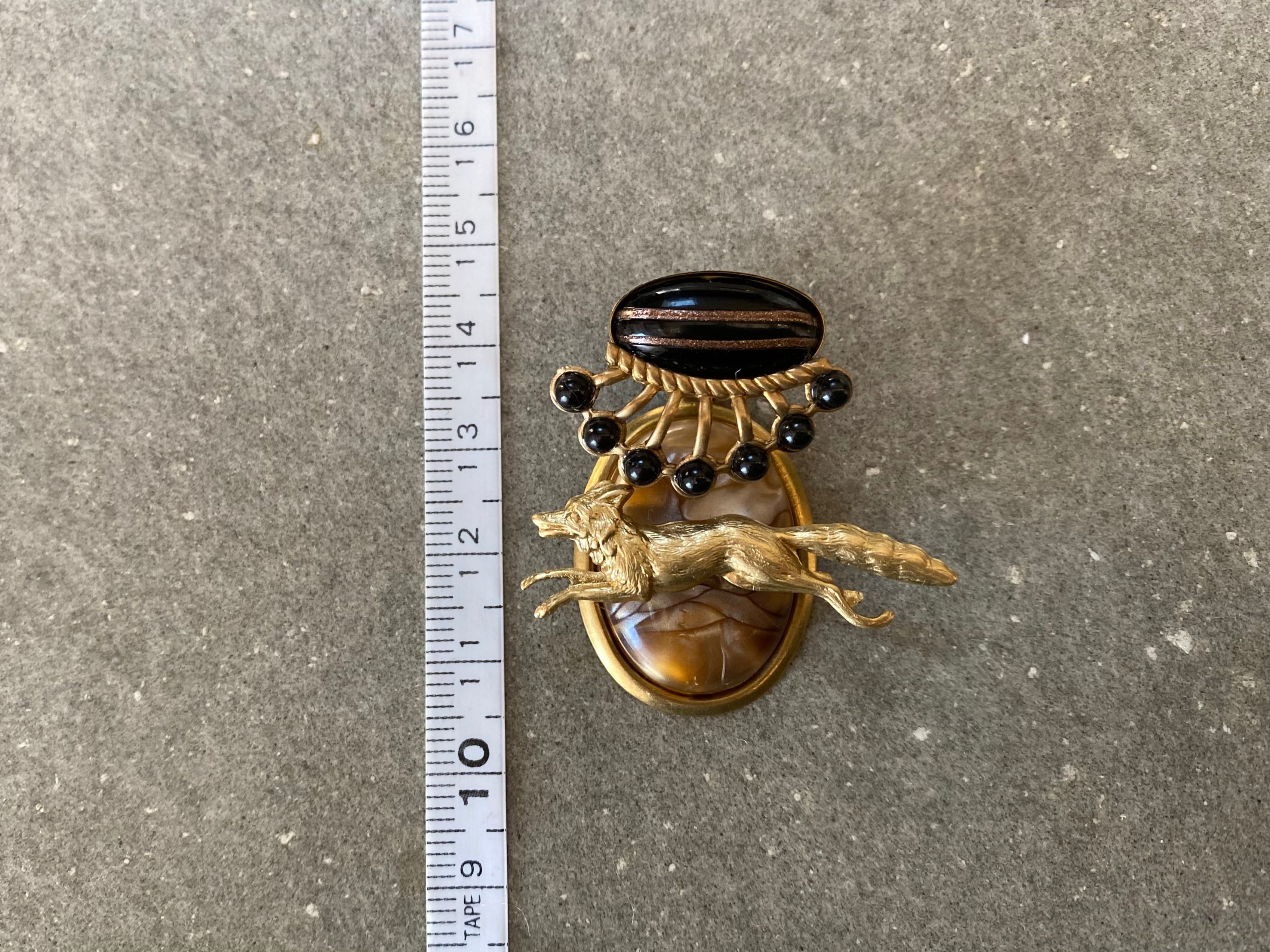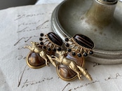 ラインの入ったガラスカボションに黒いスワロフスキーパールが散らされて、シックな雰囲気です。