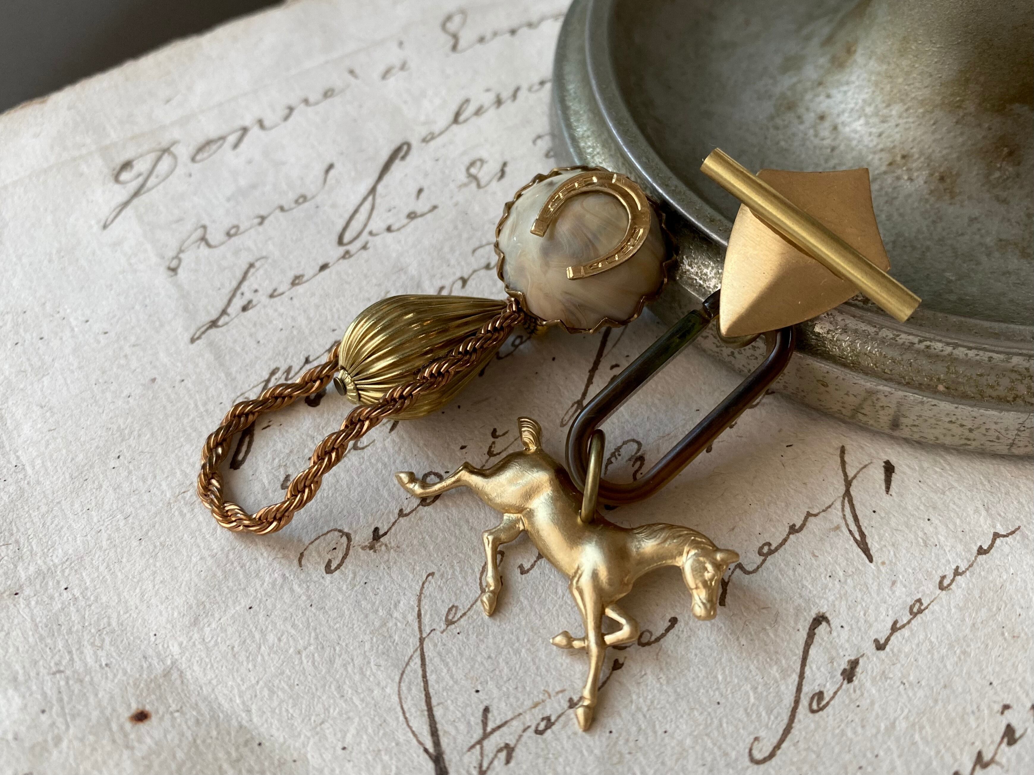 ヴィンテージパーツを使用してアシンメトリーなピアスを作りました。