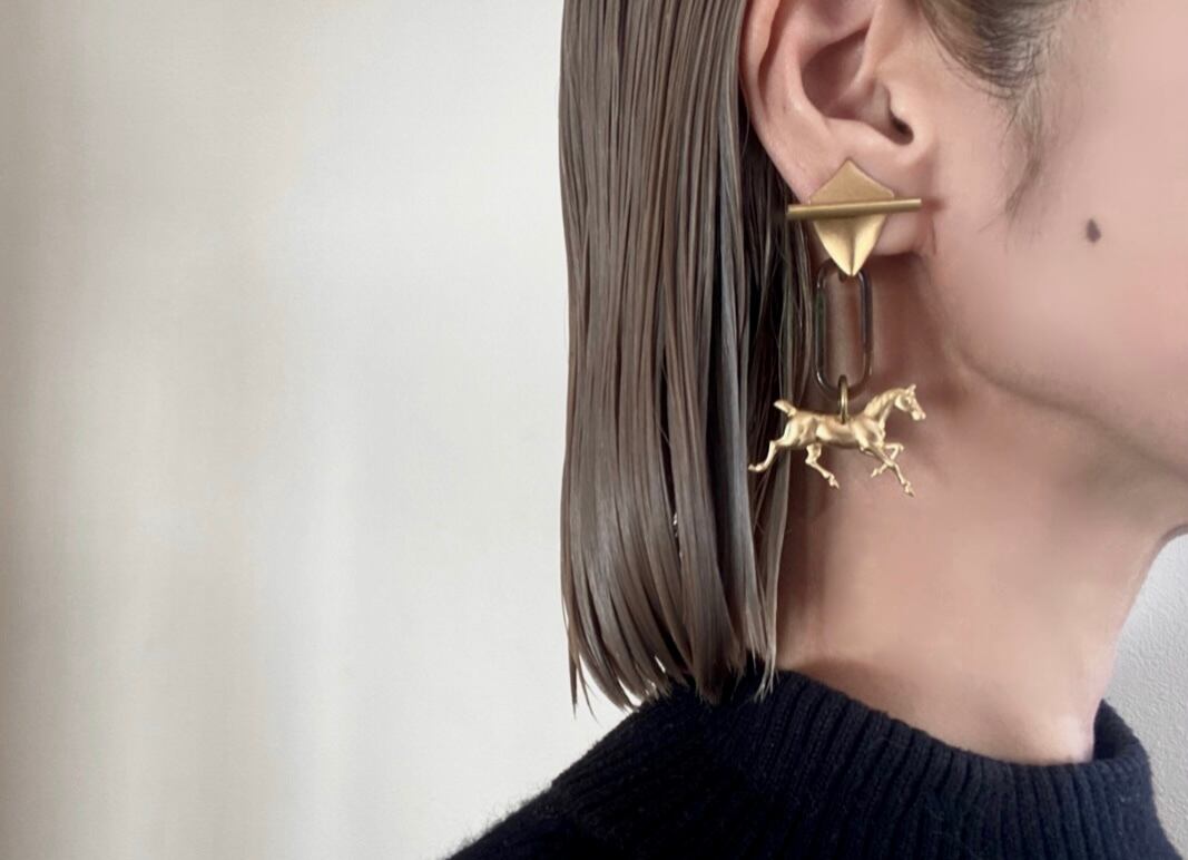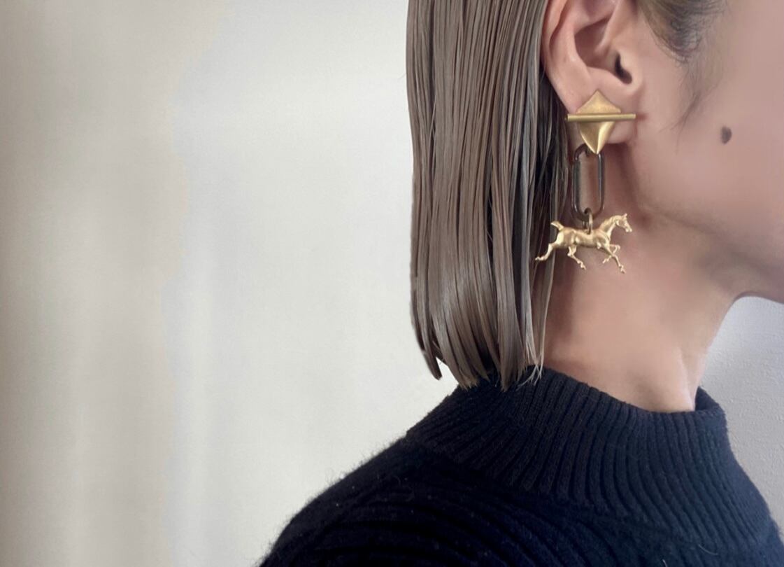 肌馴染みの良い柔らかな色合いと個性的なデザインのバランスが秀逸です。