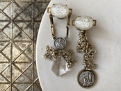 フランスのメダイに合わせて繊細な印象のガラスを添え、カボションも柔らかな光を纏うガラスドームを選びました。
