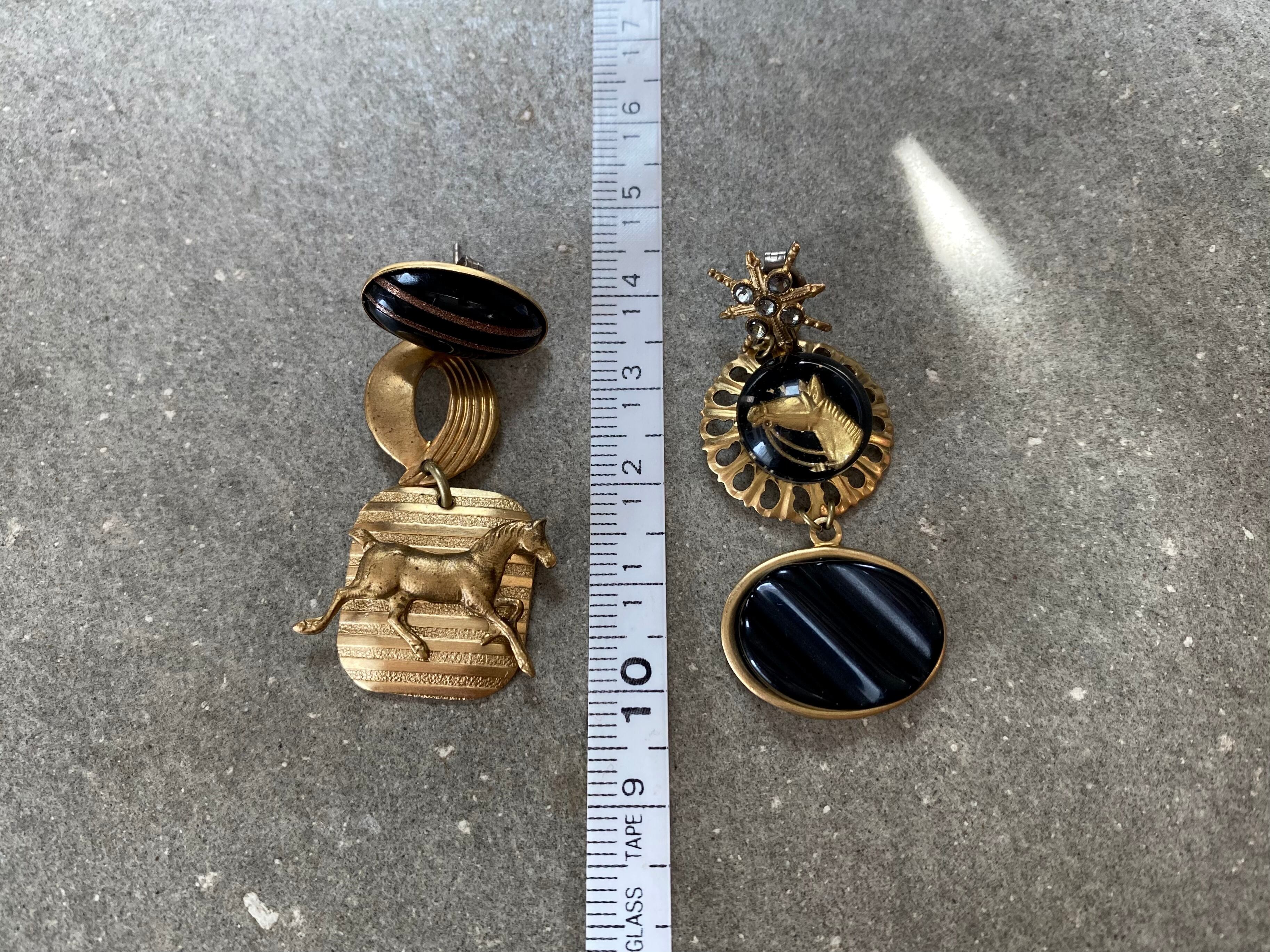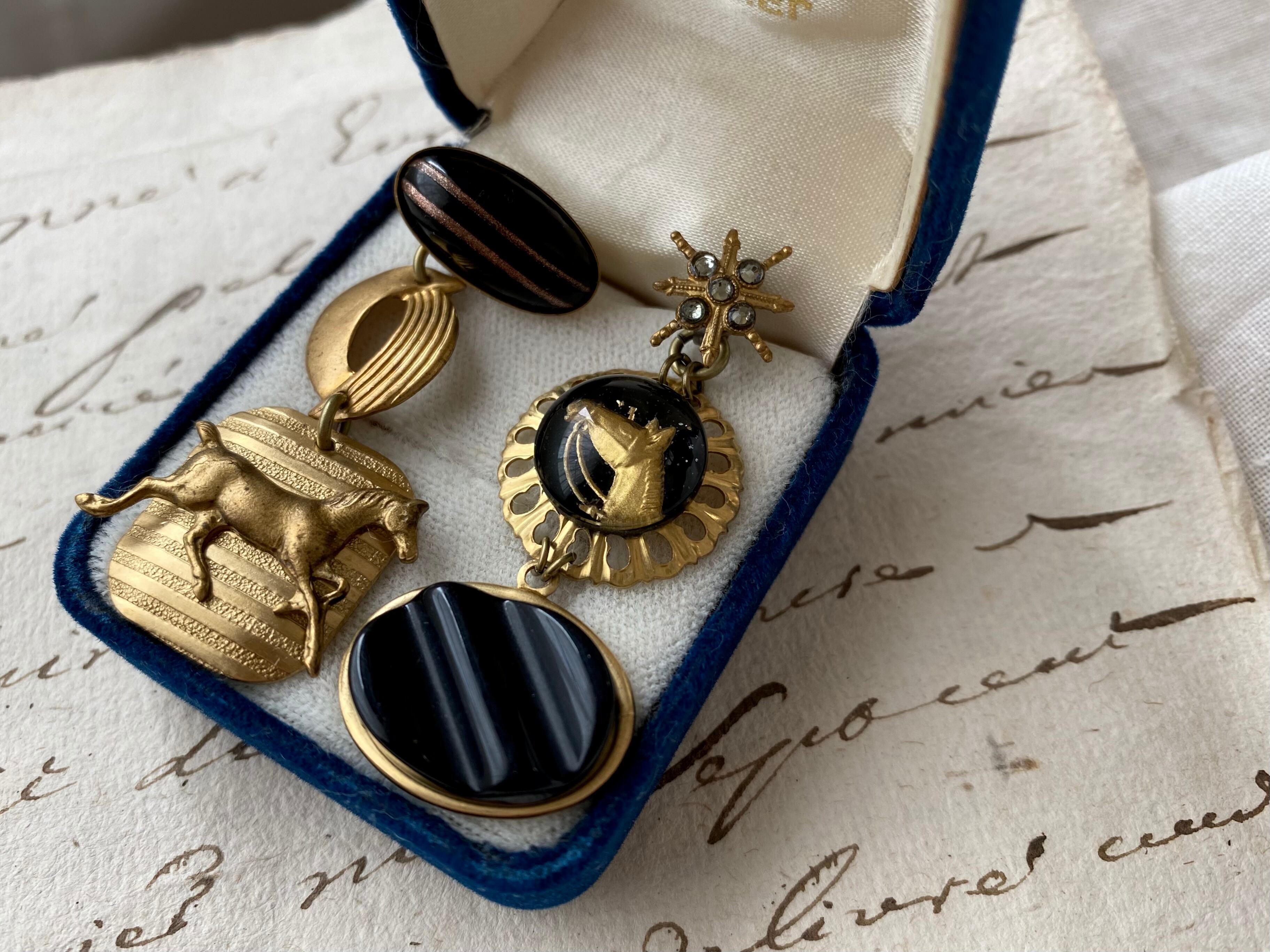 ヴィンテージパーツを使用してアシンメトリーなピアスを作りました。