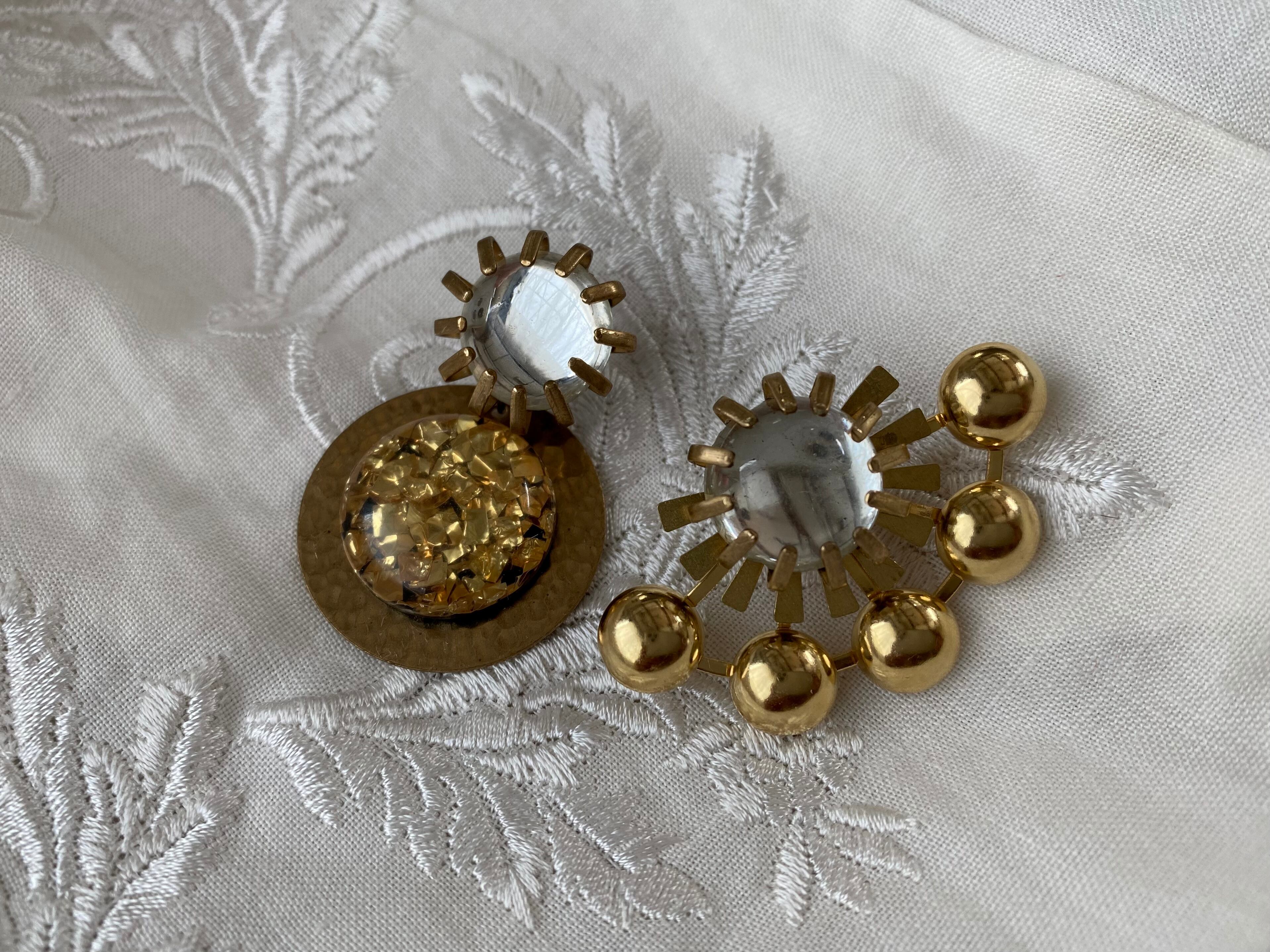 ヴィンテージパーツを使用してアシンメトリーなピアスを作りました。