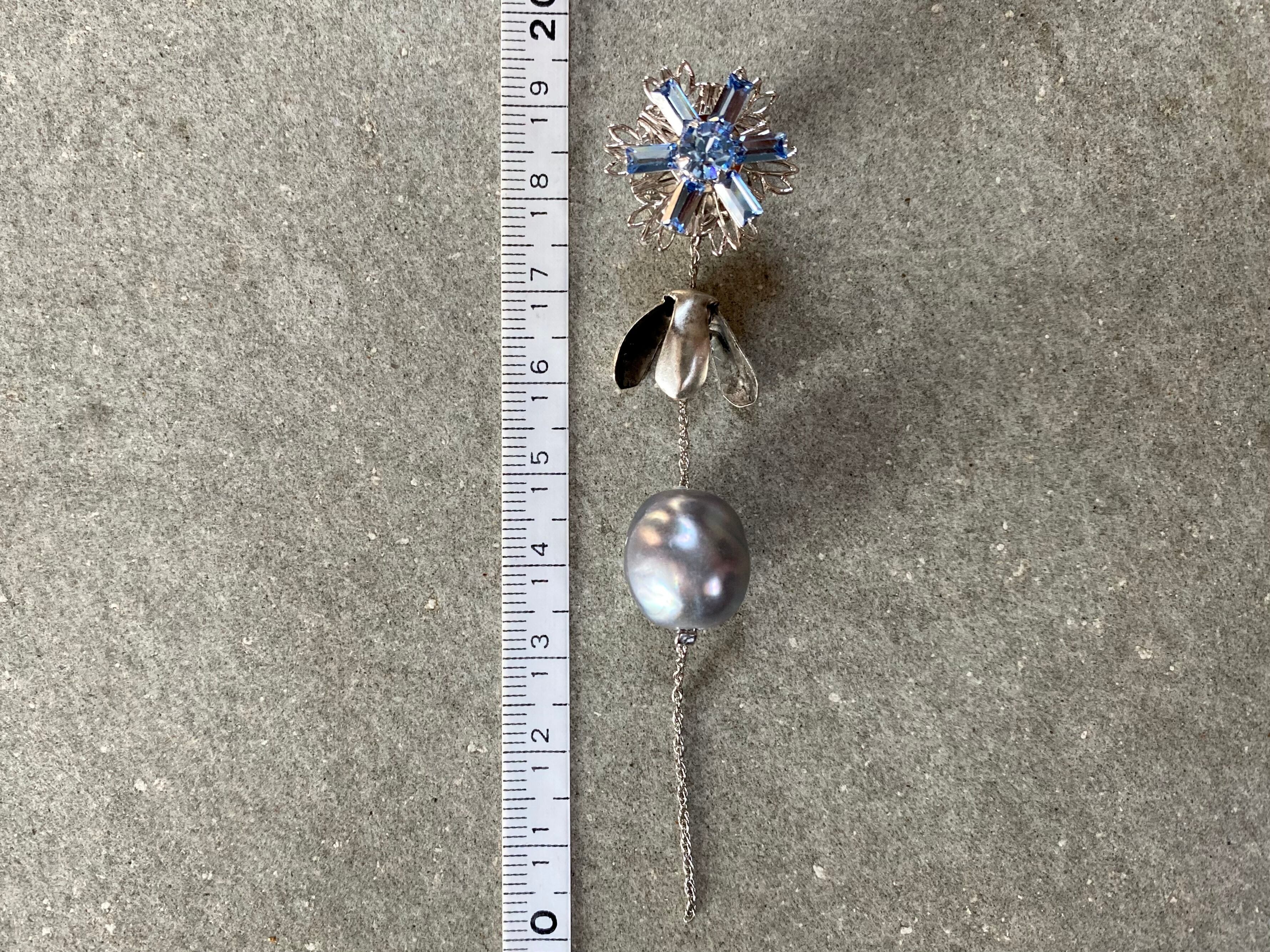 お花が可憐な雰囲気ですが、シックなブルーグレーのガラスパールを合わせ、またスッキリとシンプルなシルエットにする事で、大人っぽく仕上げました。