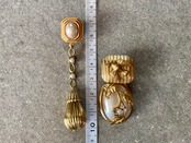 ヴィンテージパーツを使用してアシンメトリーなピアスを作りました。
