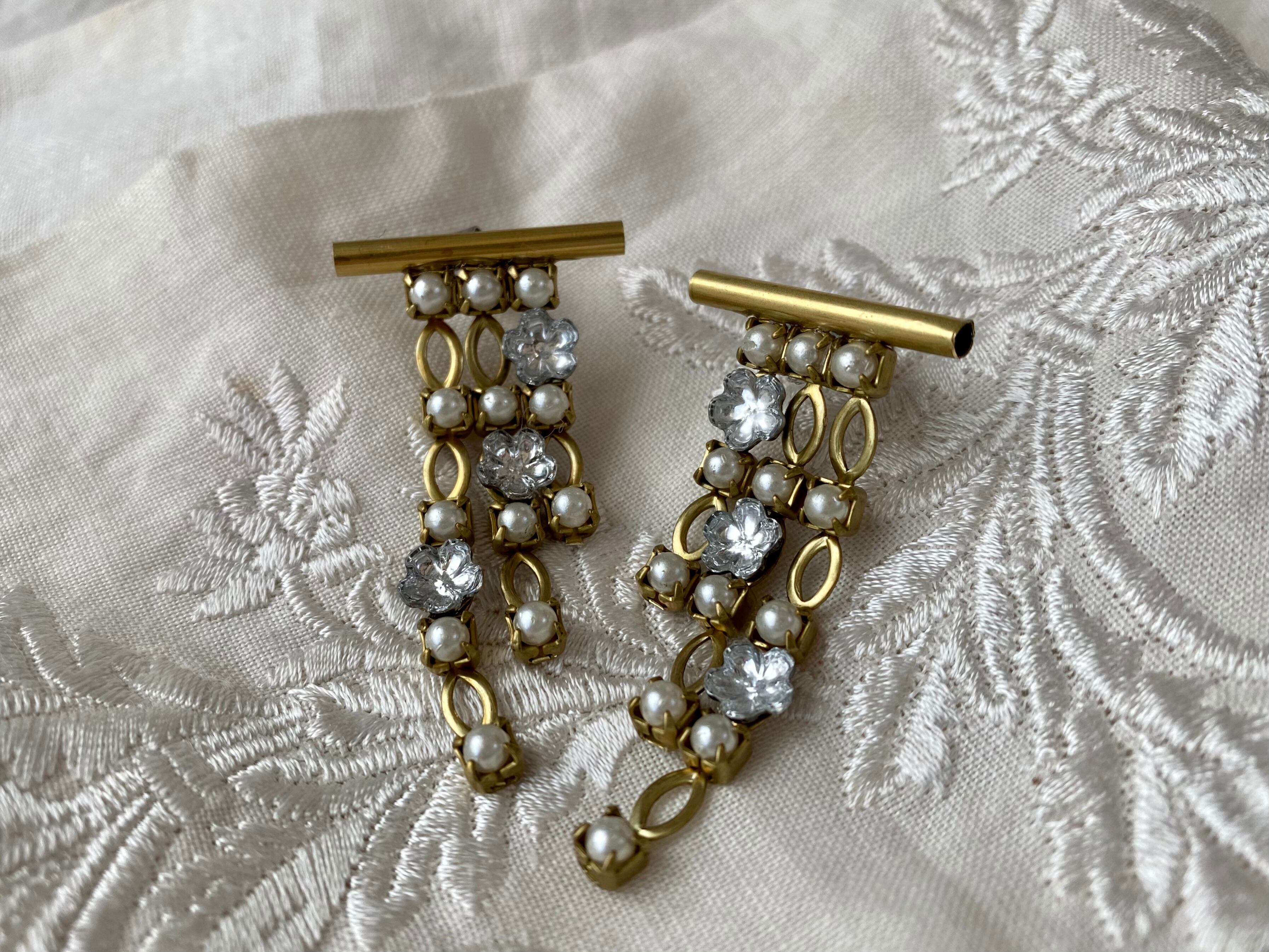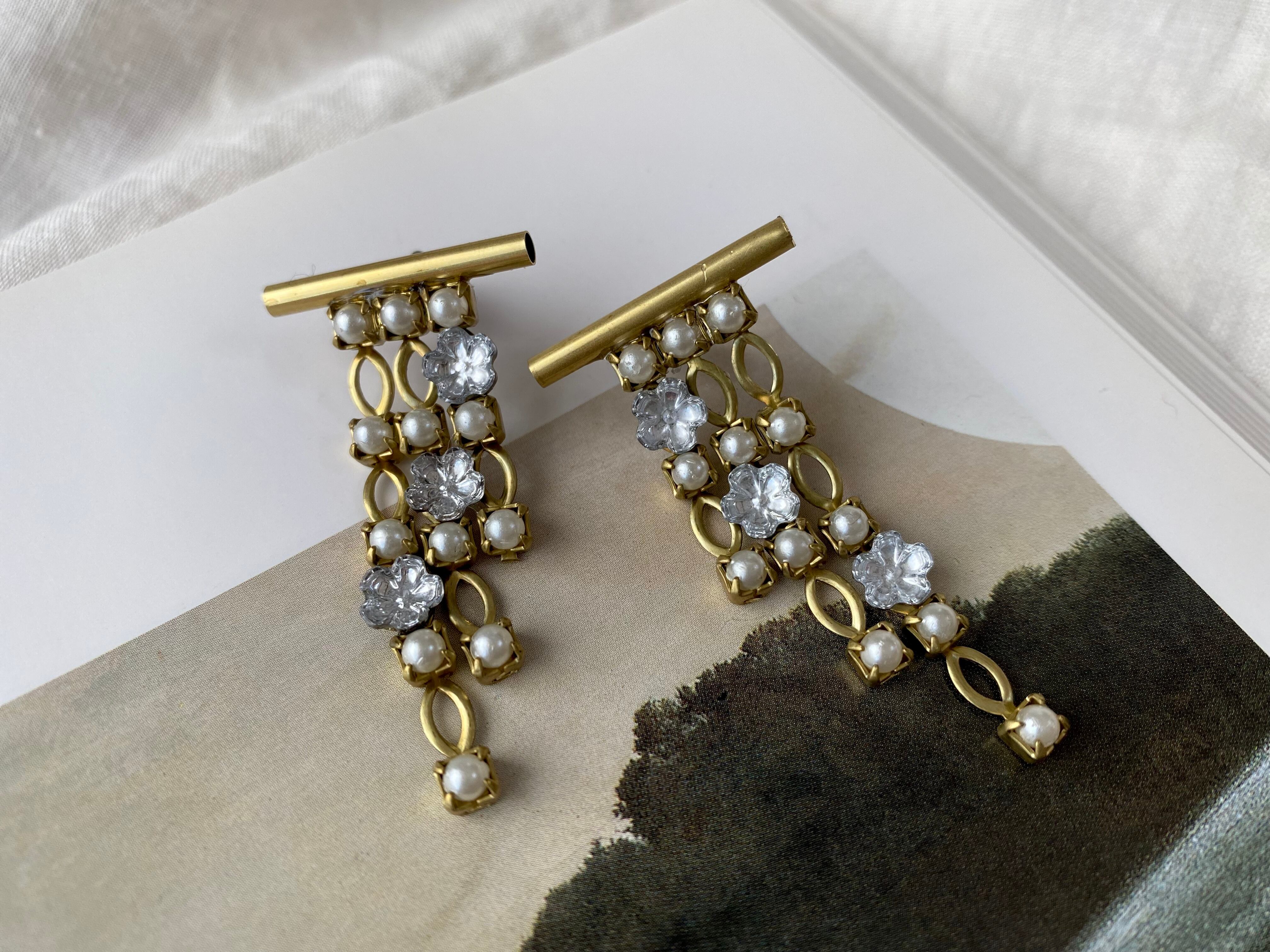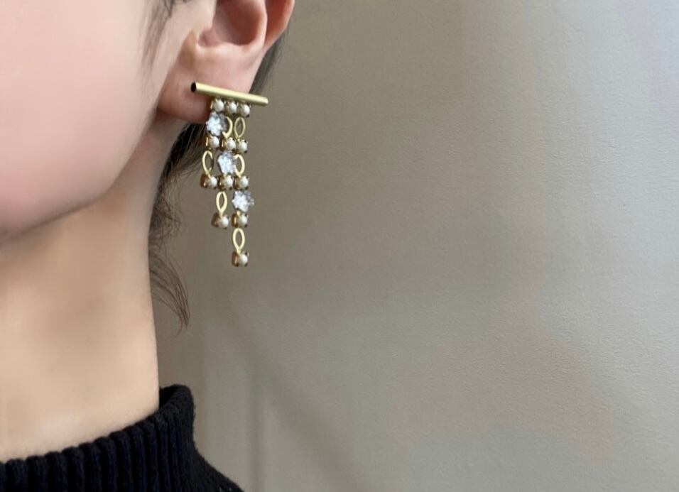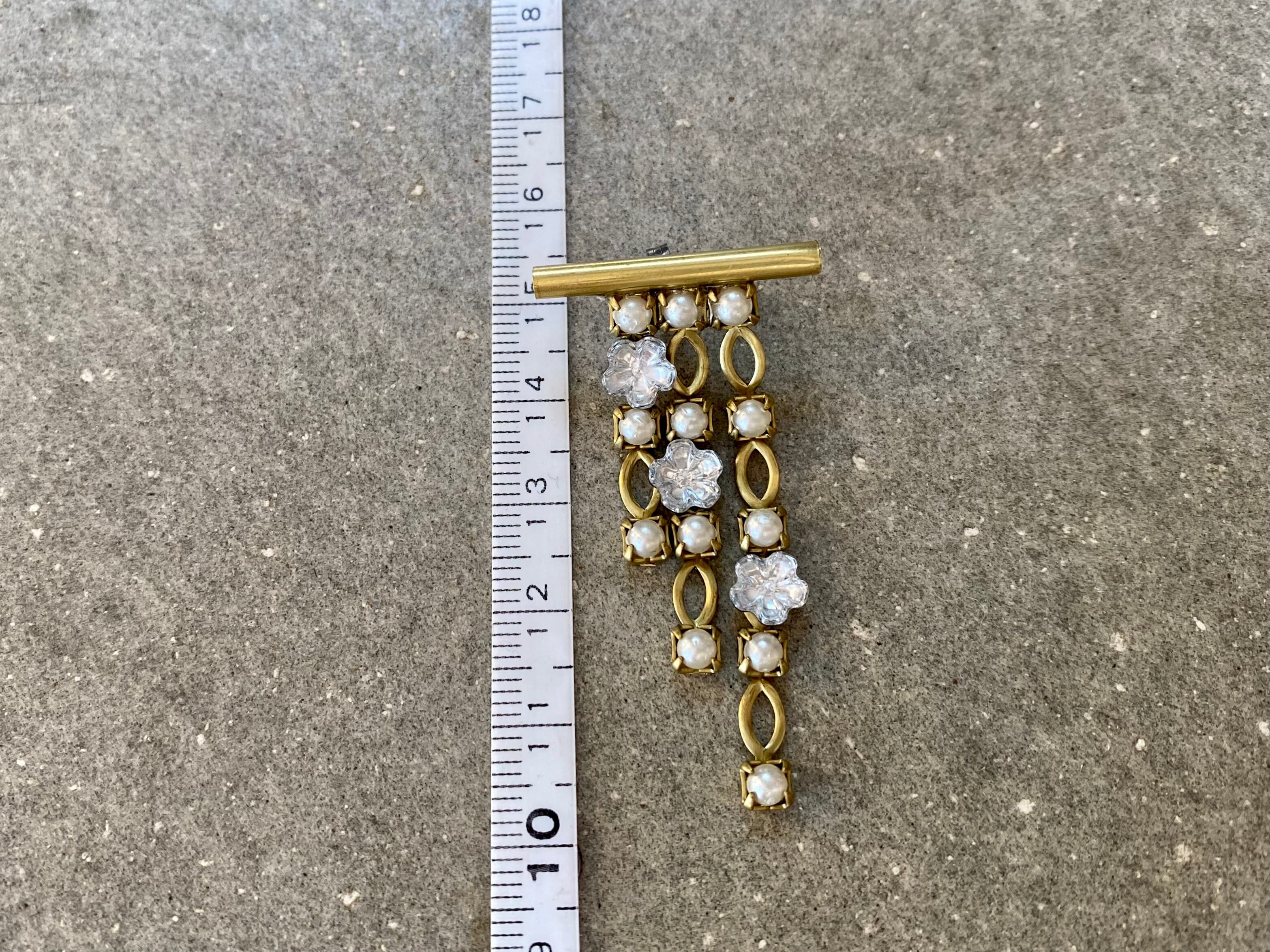 スワロフスキーのパールチェーンにお花のカットガラスが散らしており、2種類の煌めきをお楽しみ頂けます。