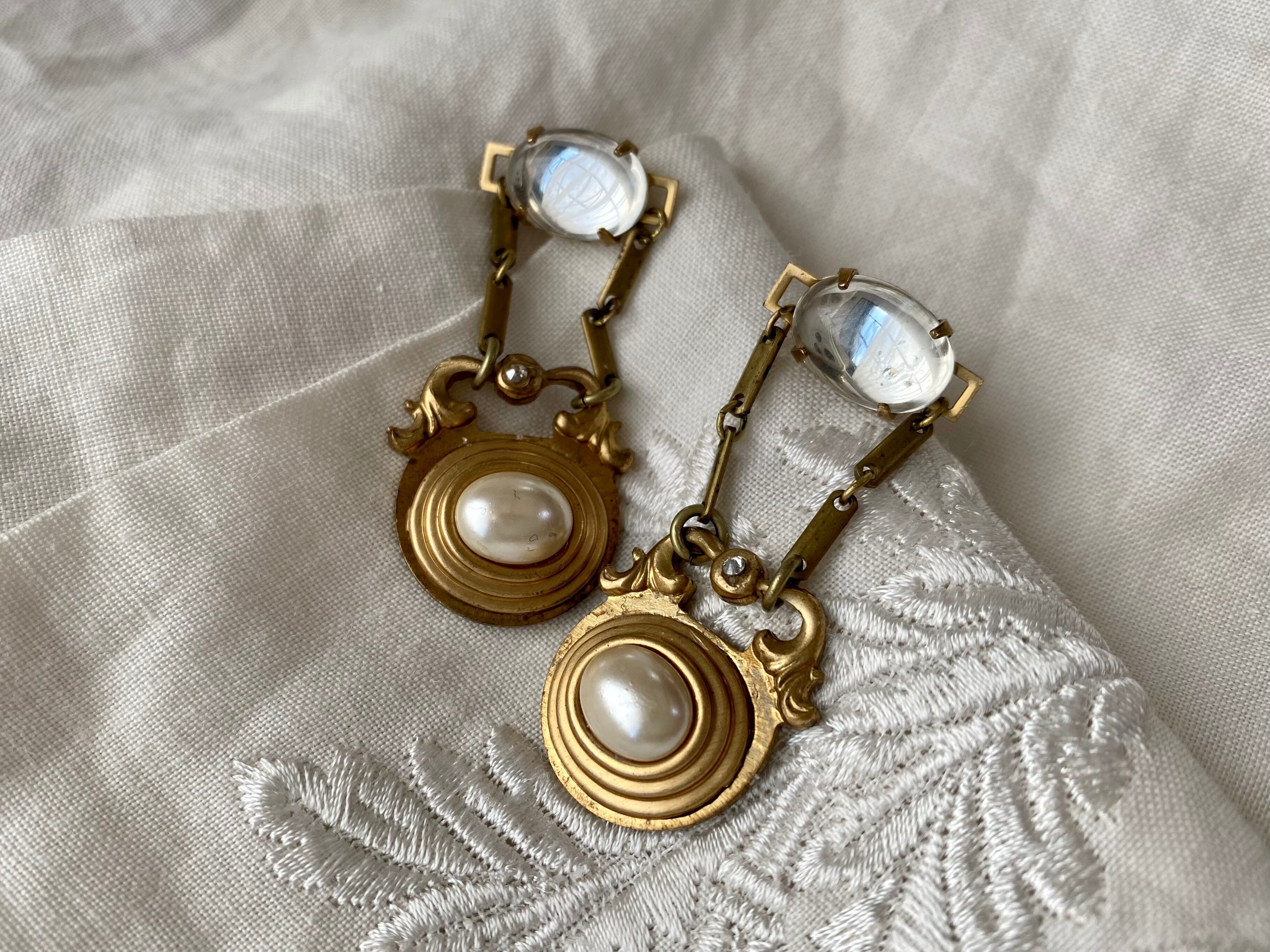 クリアなガラスドームのカボションと小ぶりなパールが上品な印象です。