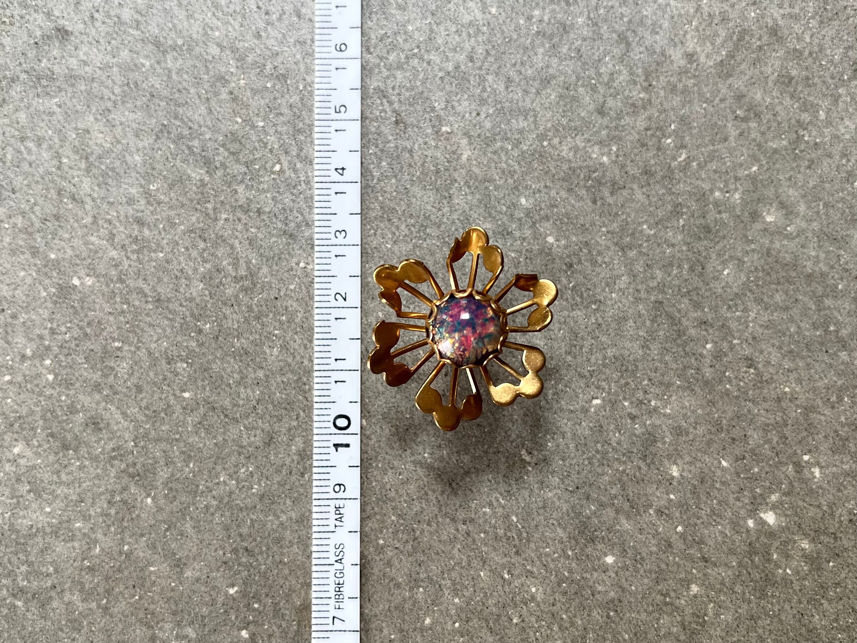 真鍮のフラワーモチーフにガラスドームを置いたシンプルなデザインですが、ボリュームがあり存在感があります。