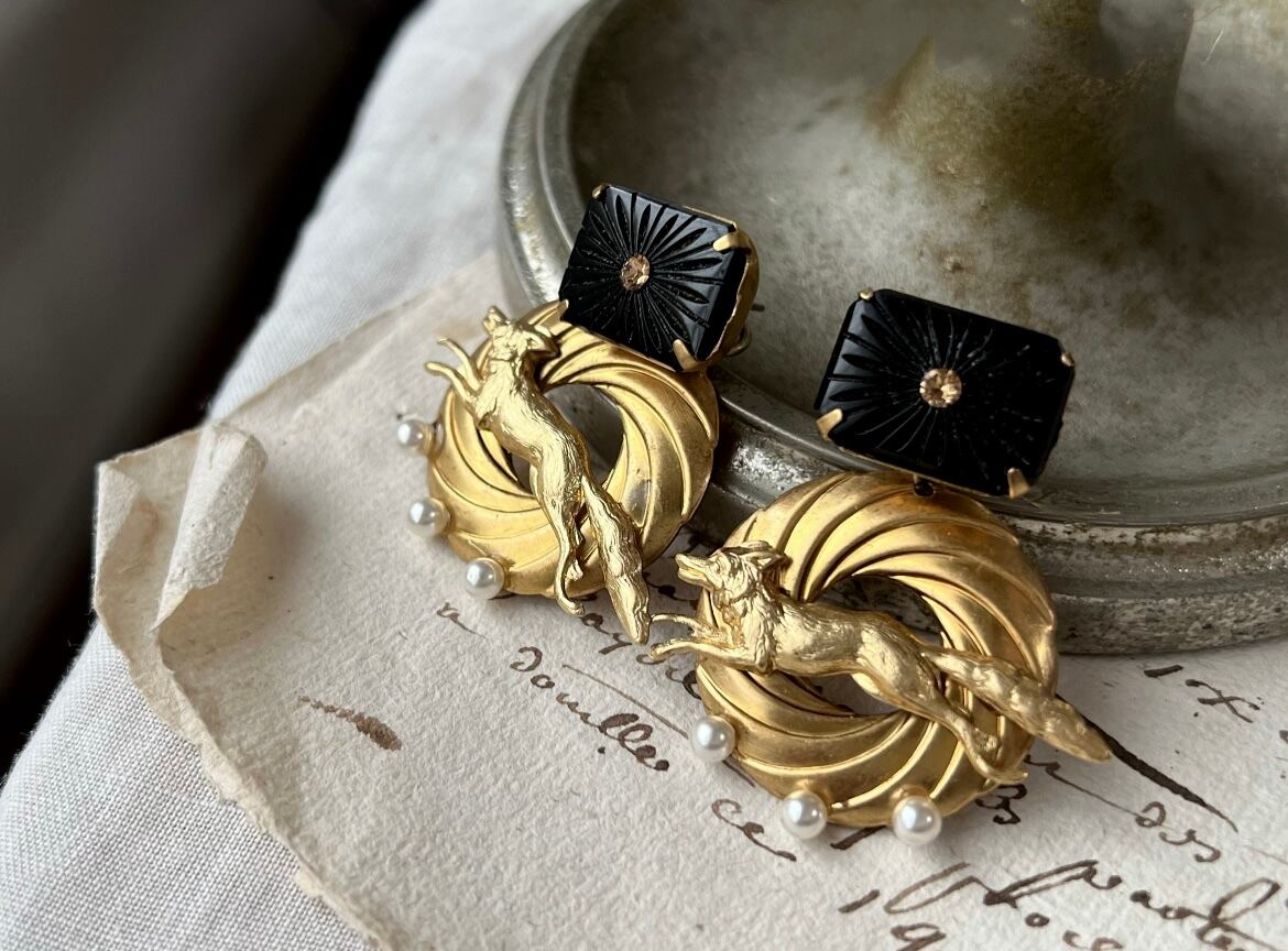 ヴィンテージパーツを使用してピアスを作りました。