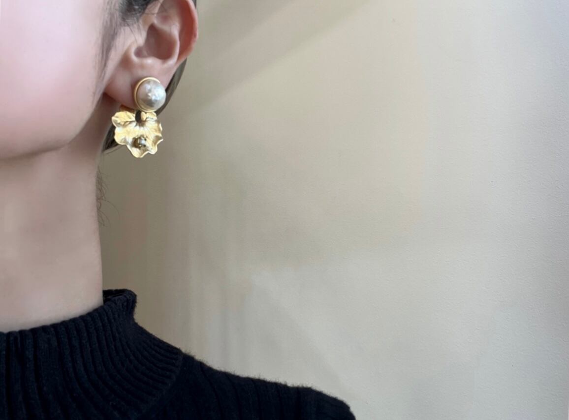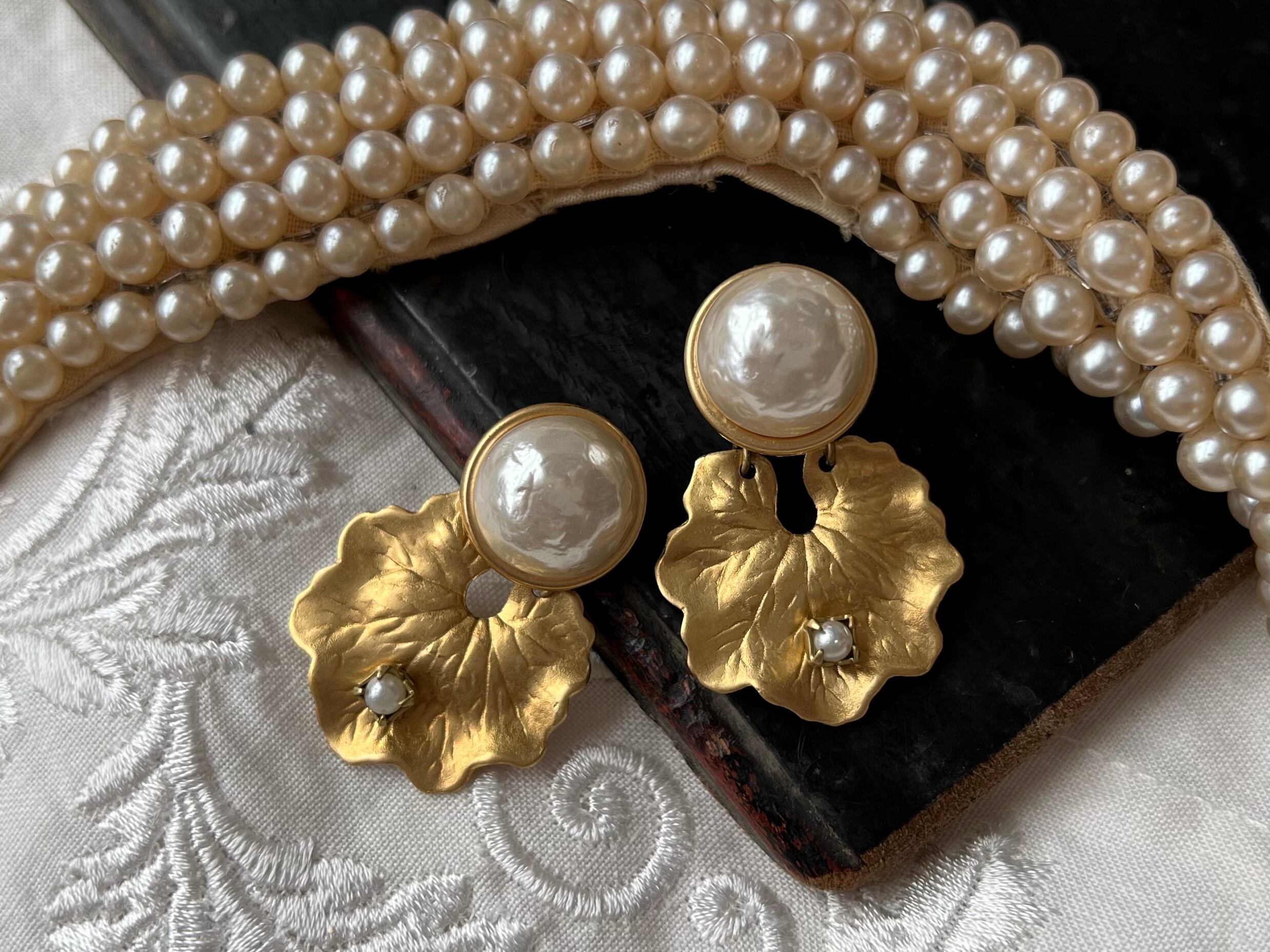美しいミリアムハスケルのパールカボションに統一感を感じさせるミリアムハスケルの真鍮リーフを合わせました。