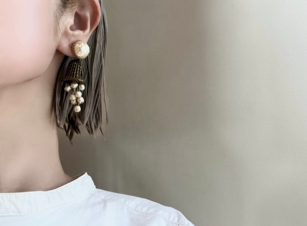 パールをメインにして、アクセントにベル型のパーツを添えています。