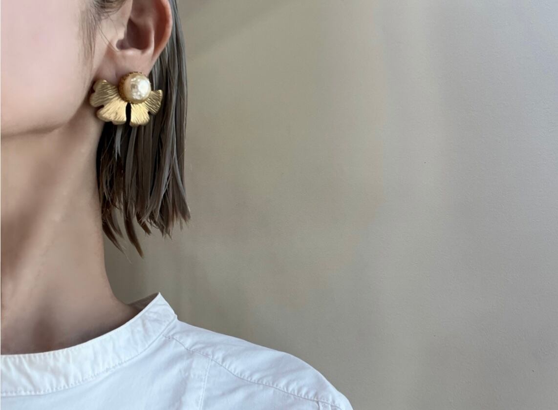 ミリアムハスケルのパールカボションにボタニカルパーツを添えたシンプルなデザインですが、存在感があり、素材の美しさをお楽しみ頂けるデザインになっています。