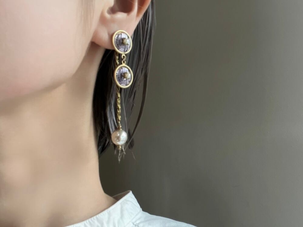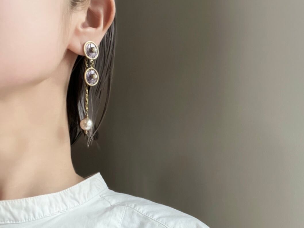 美しいカットが施されたガラスと静謐な光を放つパールが相まって、クラシカルな雰囲気に溢れています。