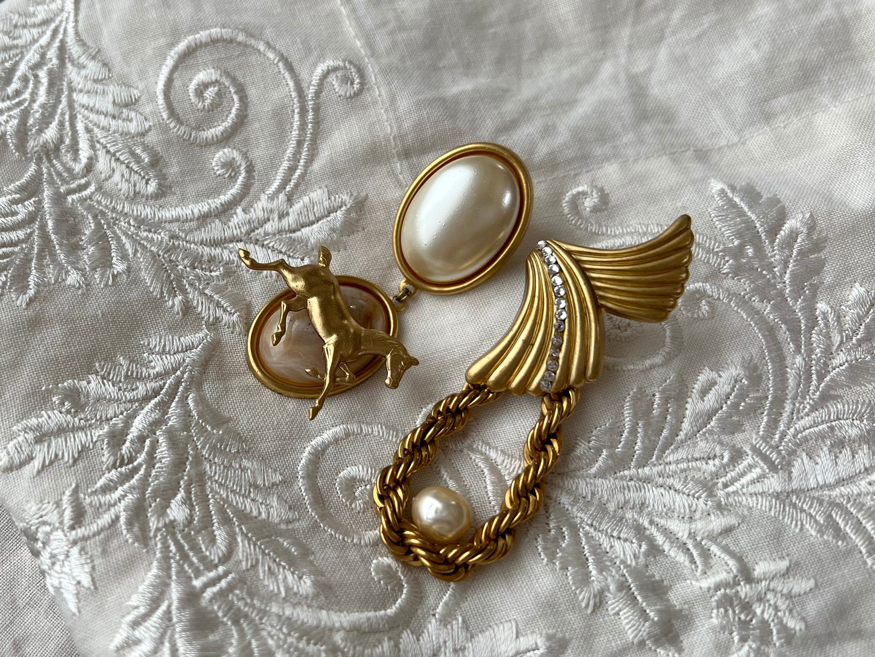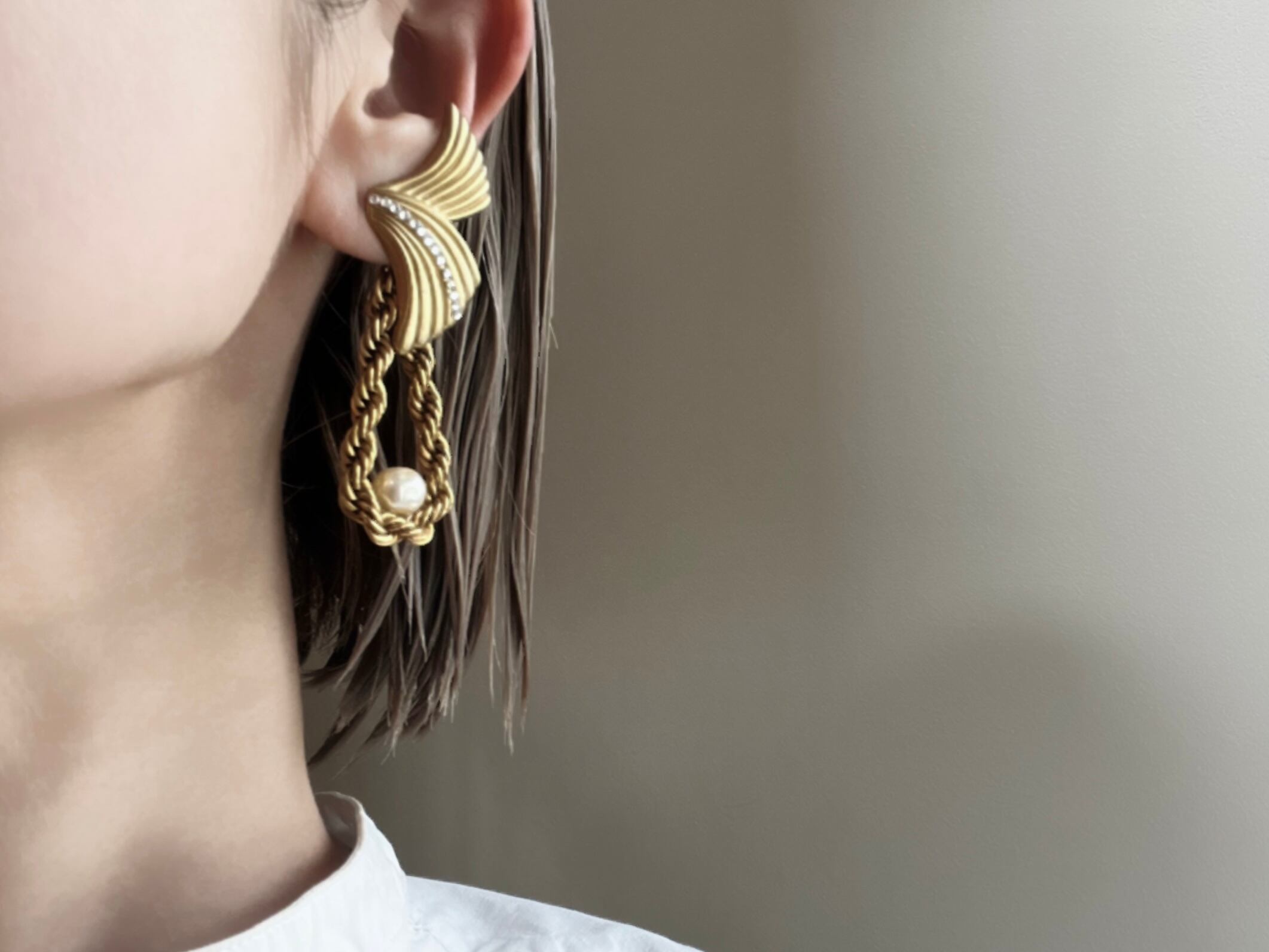 ヴィンテージパーツを使用してアシンメトリーなピアスを作りました。