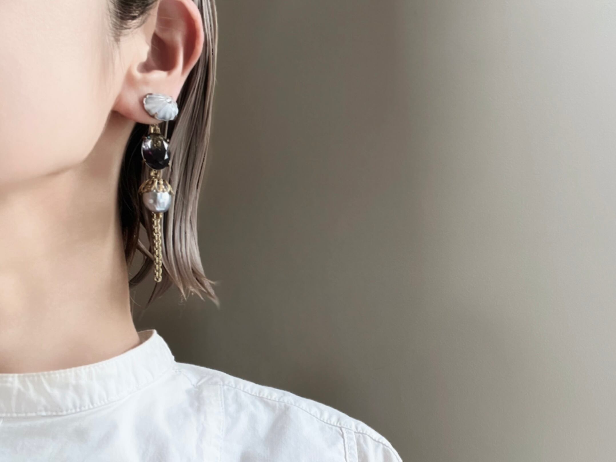 アバンギャルドな雰囲気がありつつも、ガラスパールやミリアムハスケルのパーツなどがクラシカルな一面も覗かせています。