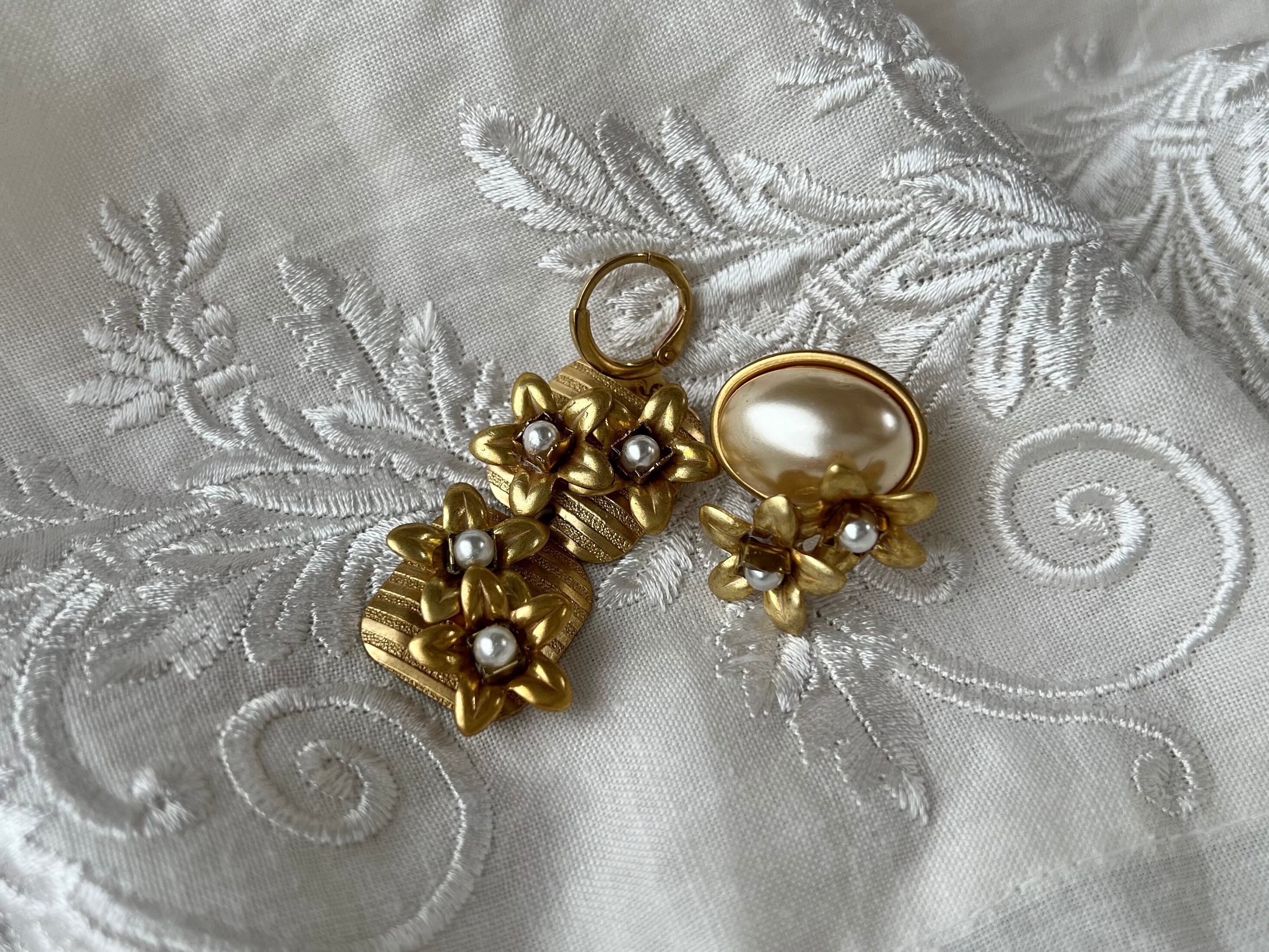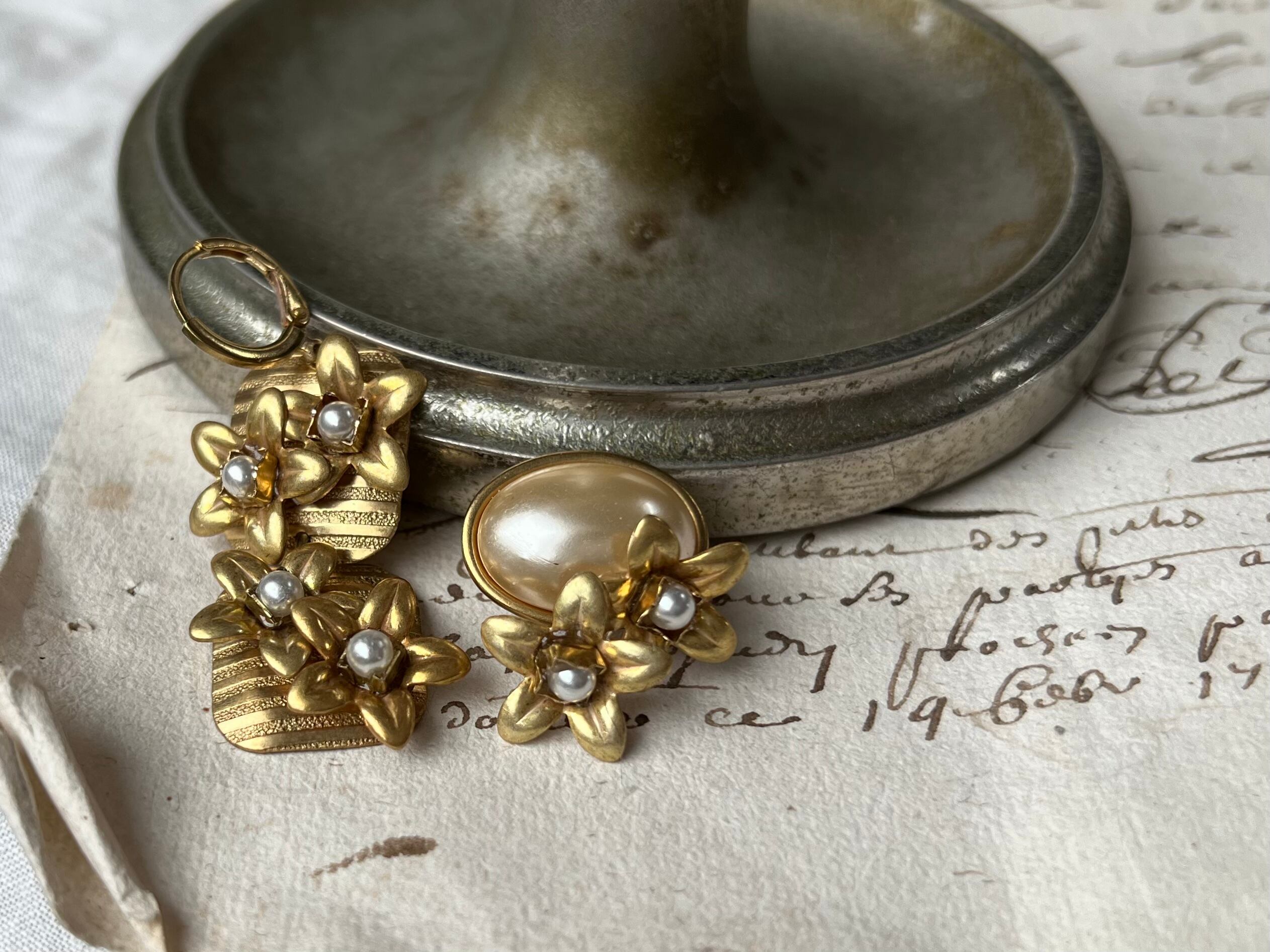 ミリアムハスケルのフラワーパーツを贅沢なに使ってパールを合わせました。