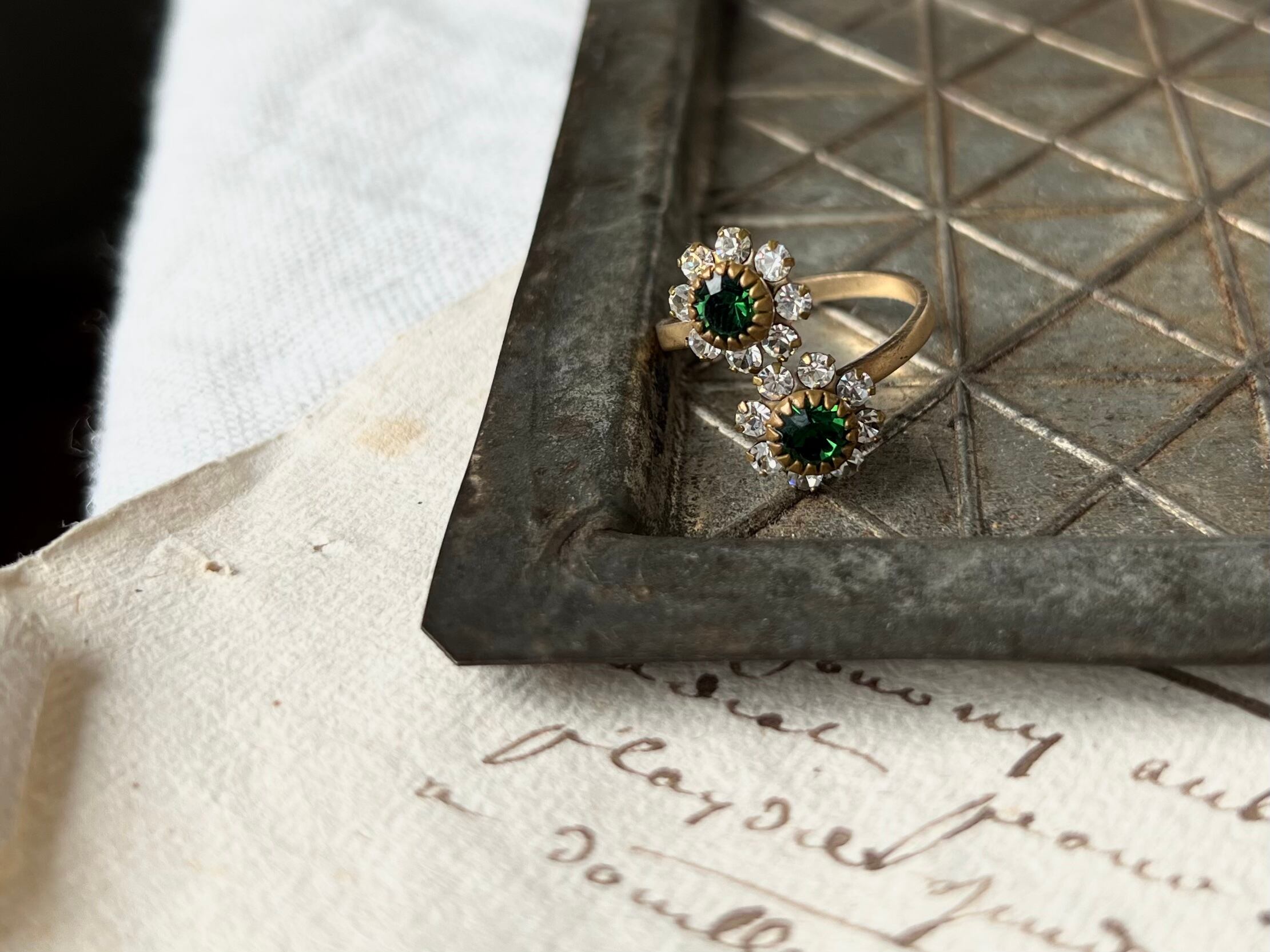 クラシカルなスワロフスキーのお花が並んでキラキラと光り、上品さと華やかさを金添えた一品です。