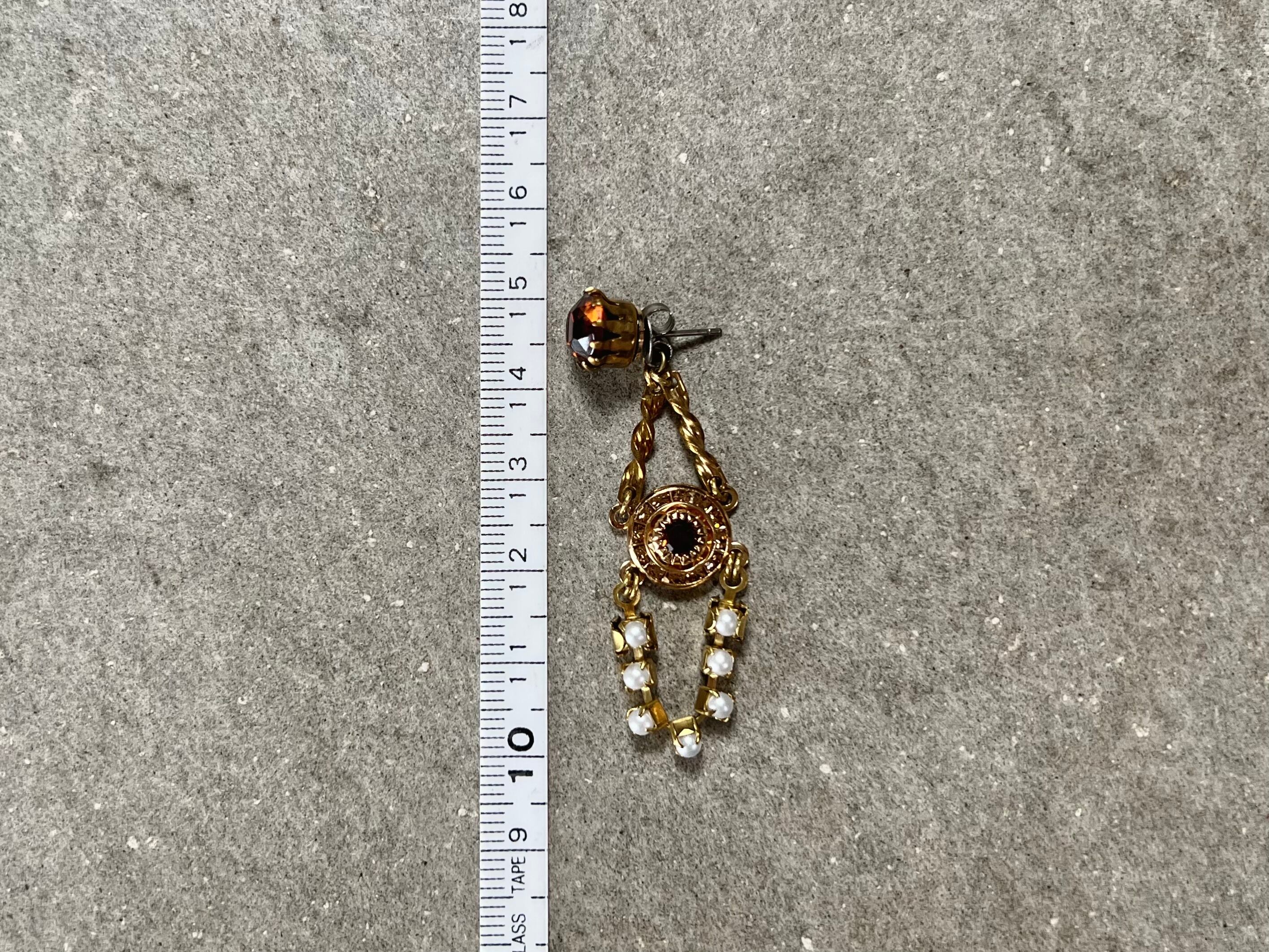 トパーズカラーのスワロフスキーを中央に置き、パールとガラスで縁取った美しい一品です。