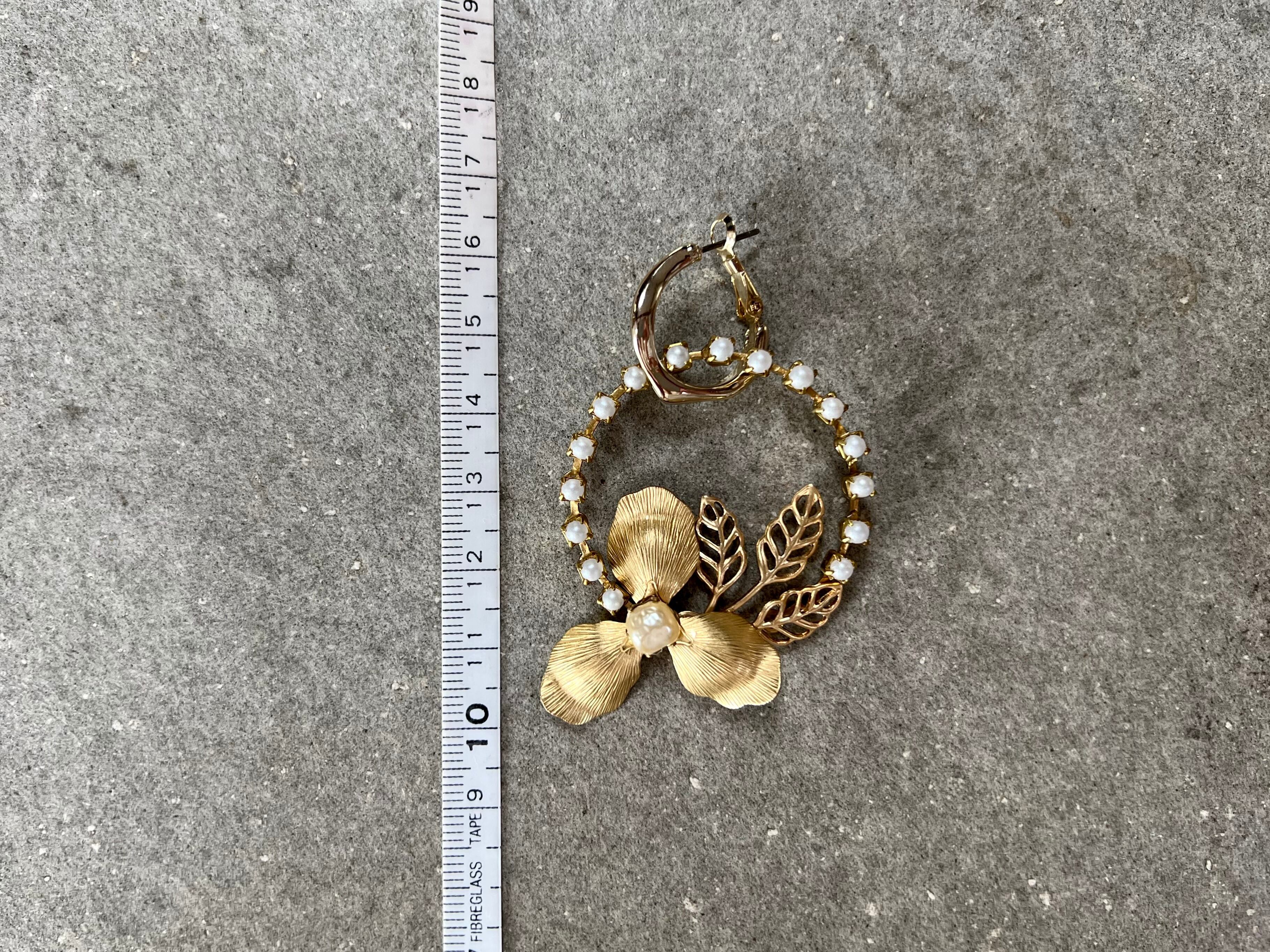 パールで囲ったフープにボタニカルパーツを添え、エレガントに仕上げました。