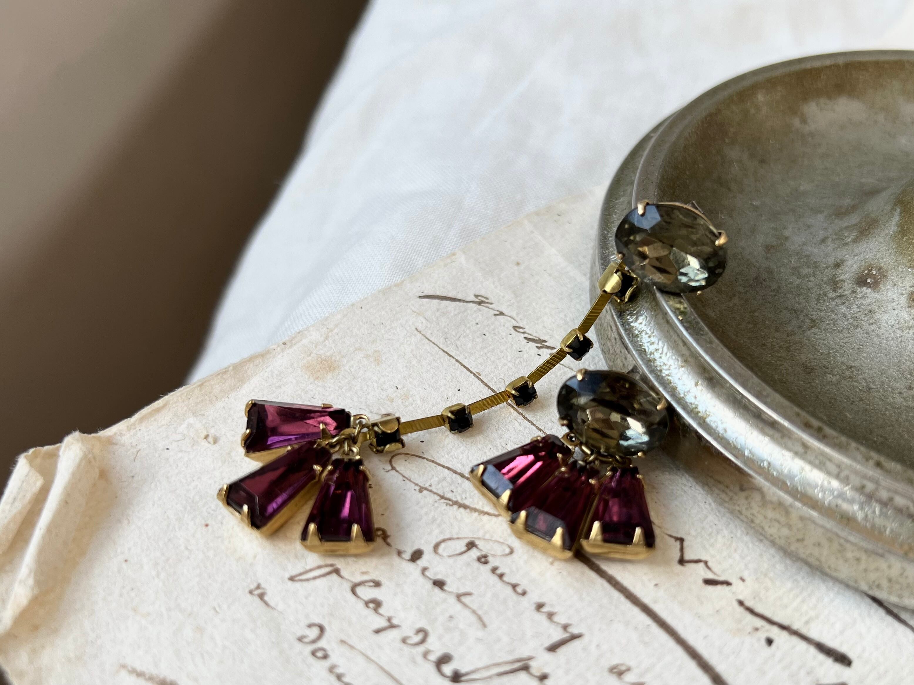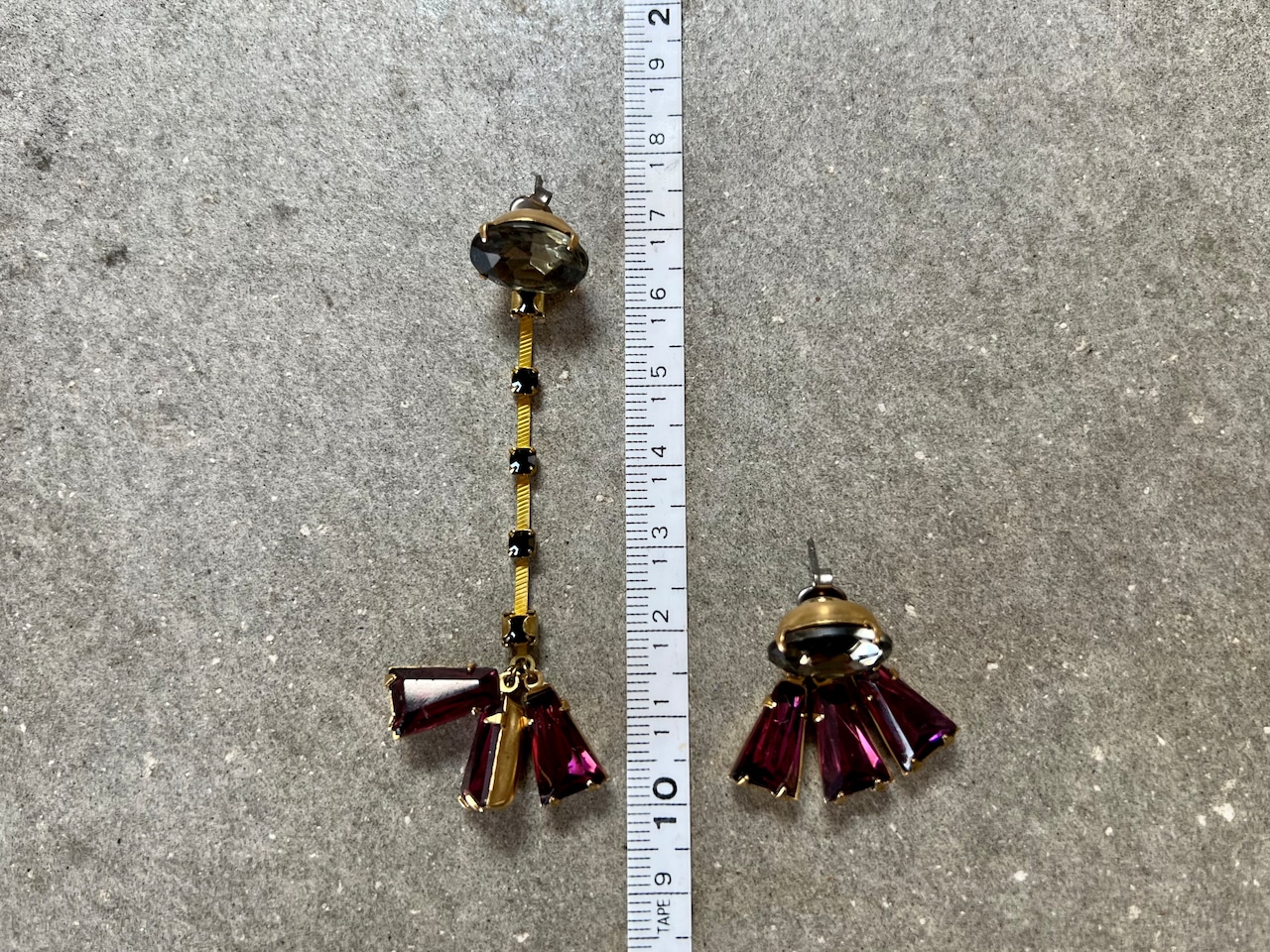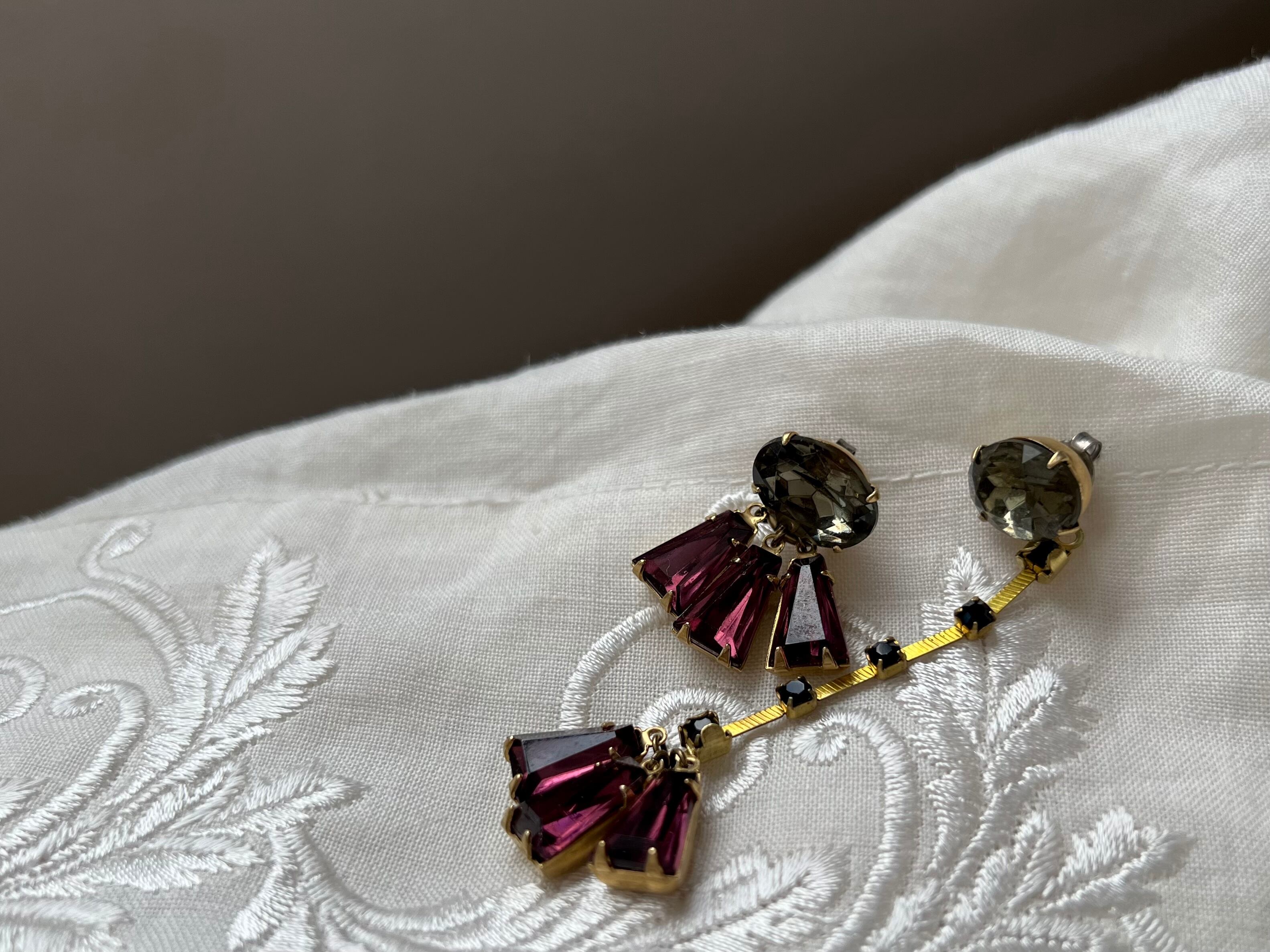 ヴィンテージパーツを使用してアシンメトリーなピアスを作りました。