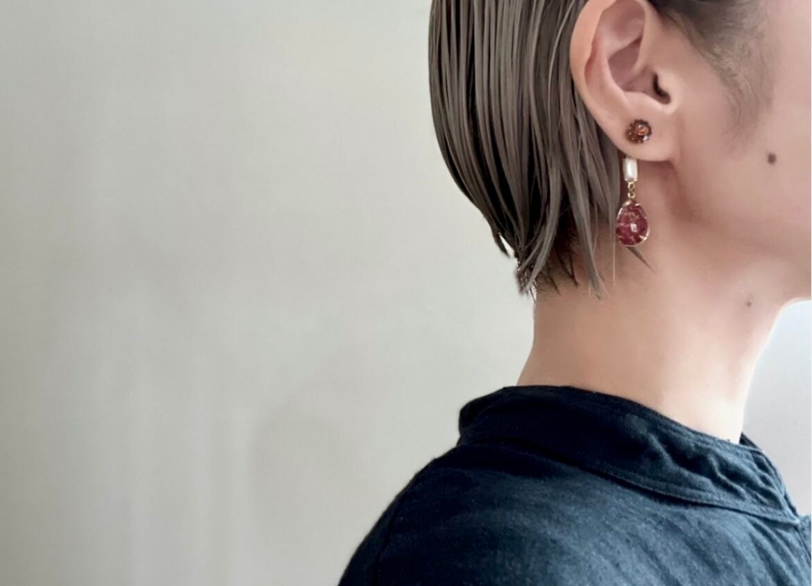 カボションにはシックなスモーキートパーズのガラスを選び、上品に大人っぽく仕上げました。