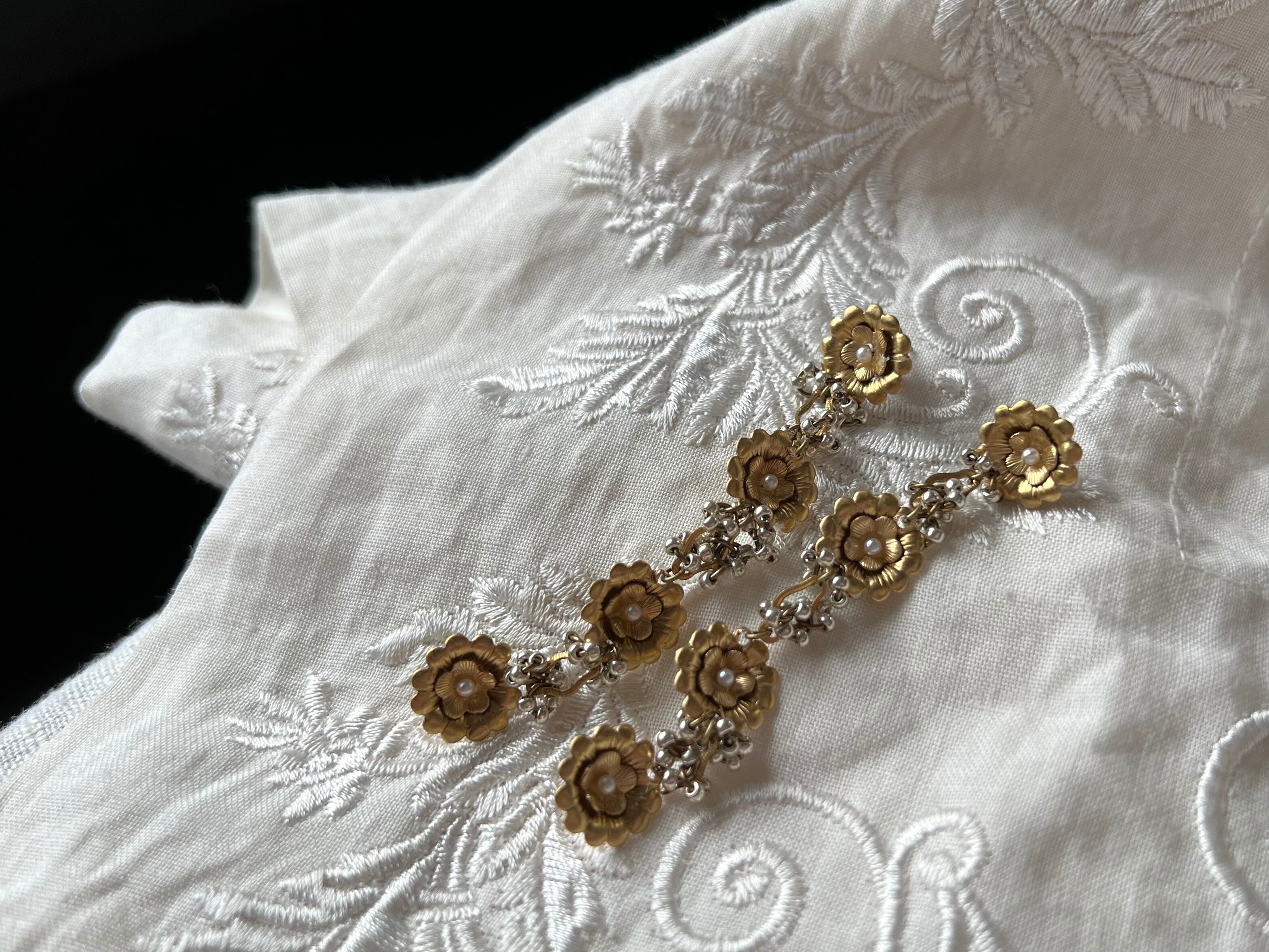 シードビーズを間に挟みつつ連なった小花が可憐な印象です。