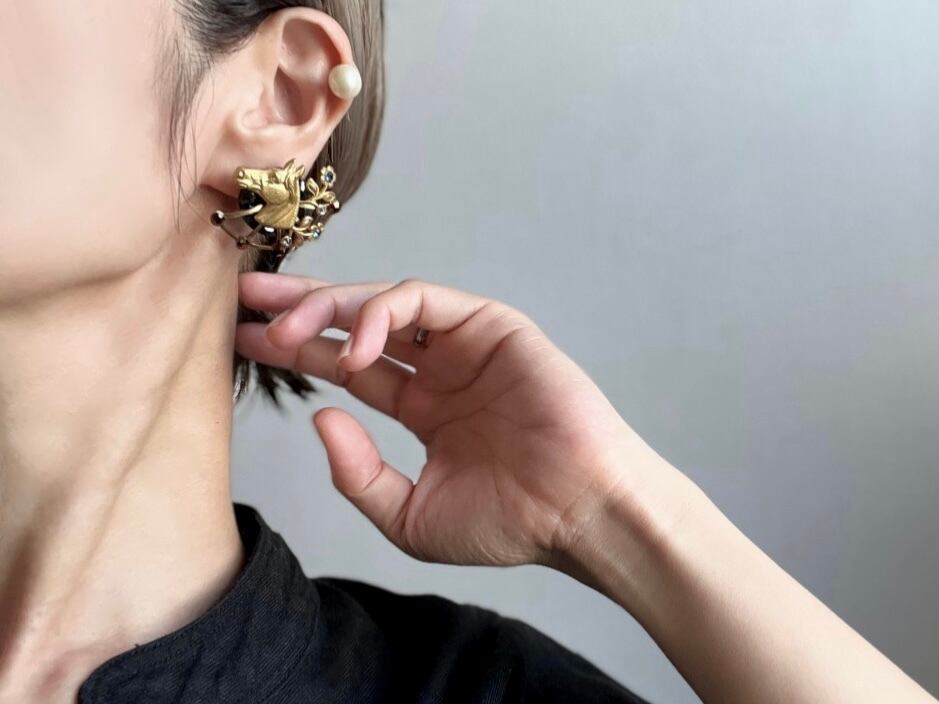 個性的なデザインで存在感がありつつも、シックで渋い色味なので大人っぽく上品な雰囲気でお使い頂けます。