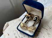 ヴィンテージパーツを使用してアシンメトリーなピアスを作りました。