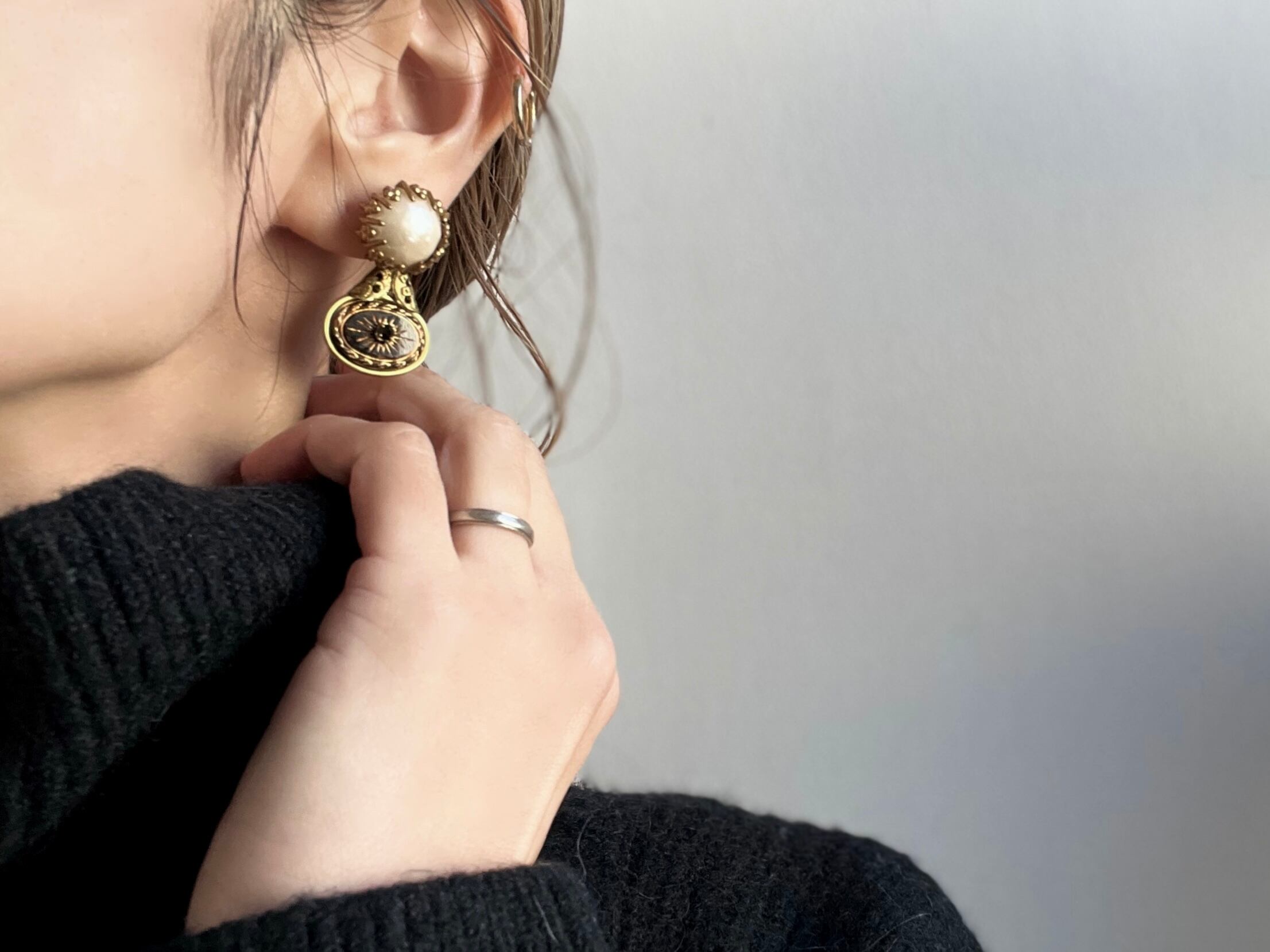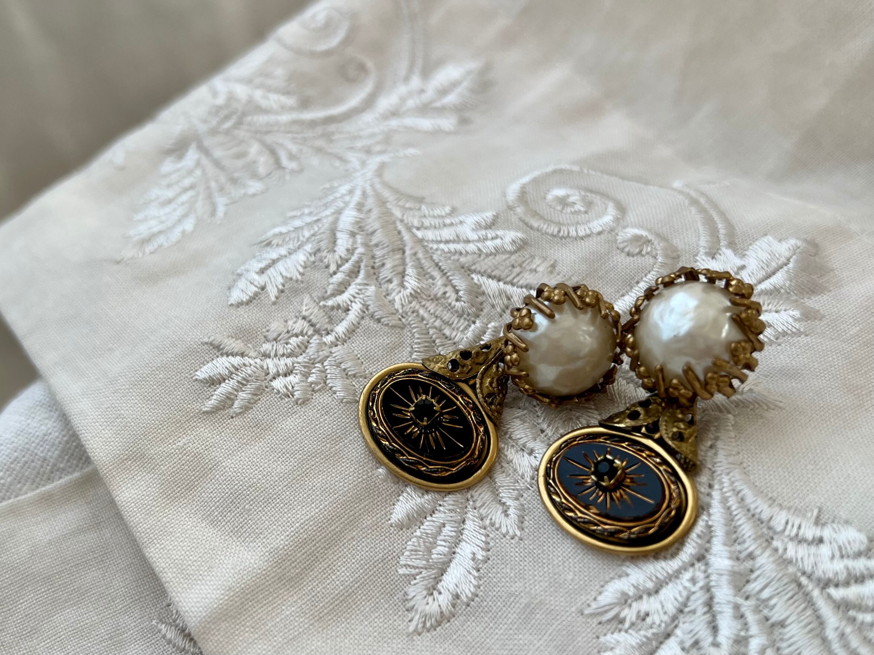 ミリアムハスケルの美しいパールやパーツに、それに引けを取らないブラックガラスを合わせてスッキリと仕上げました。