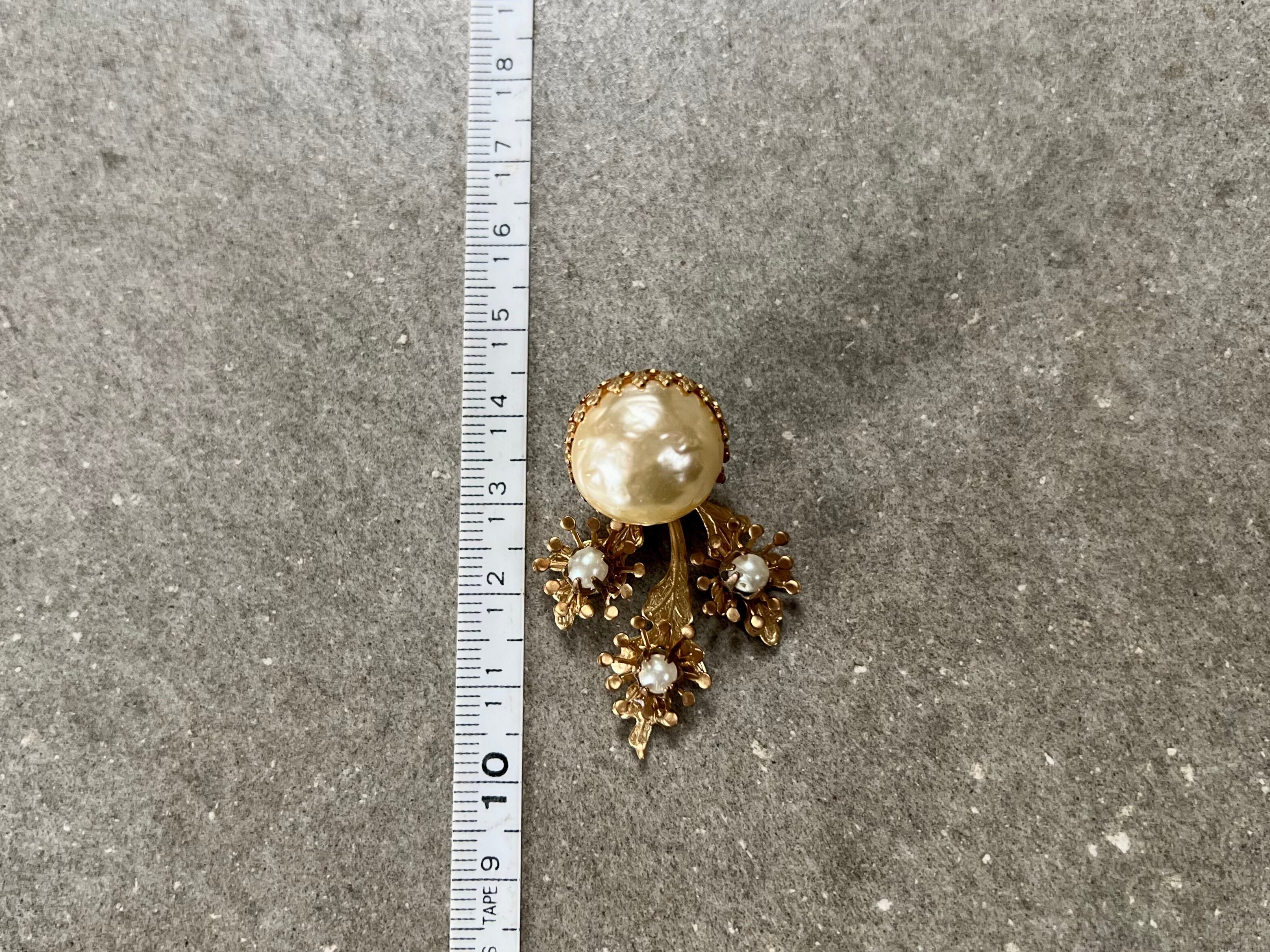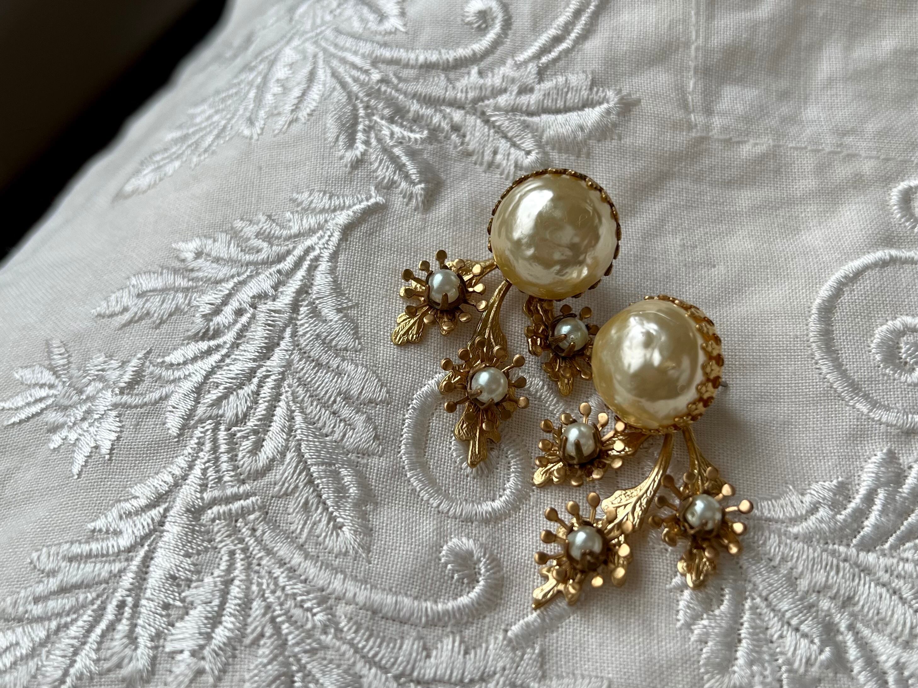 ボタニカルモチーフに雪を散らしたパーツにミリアムハスケルの美しいガラスパールが良く映えるデザインです。