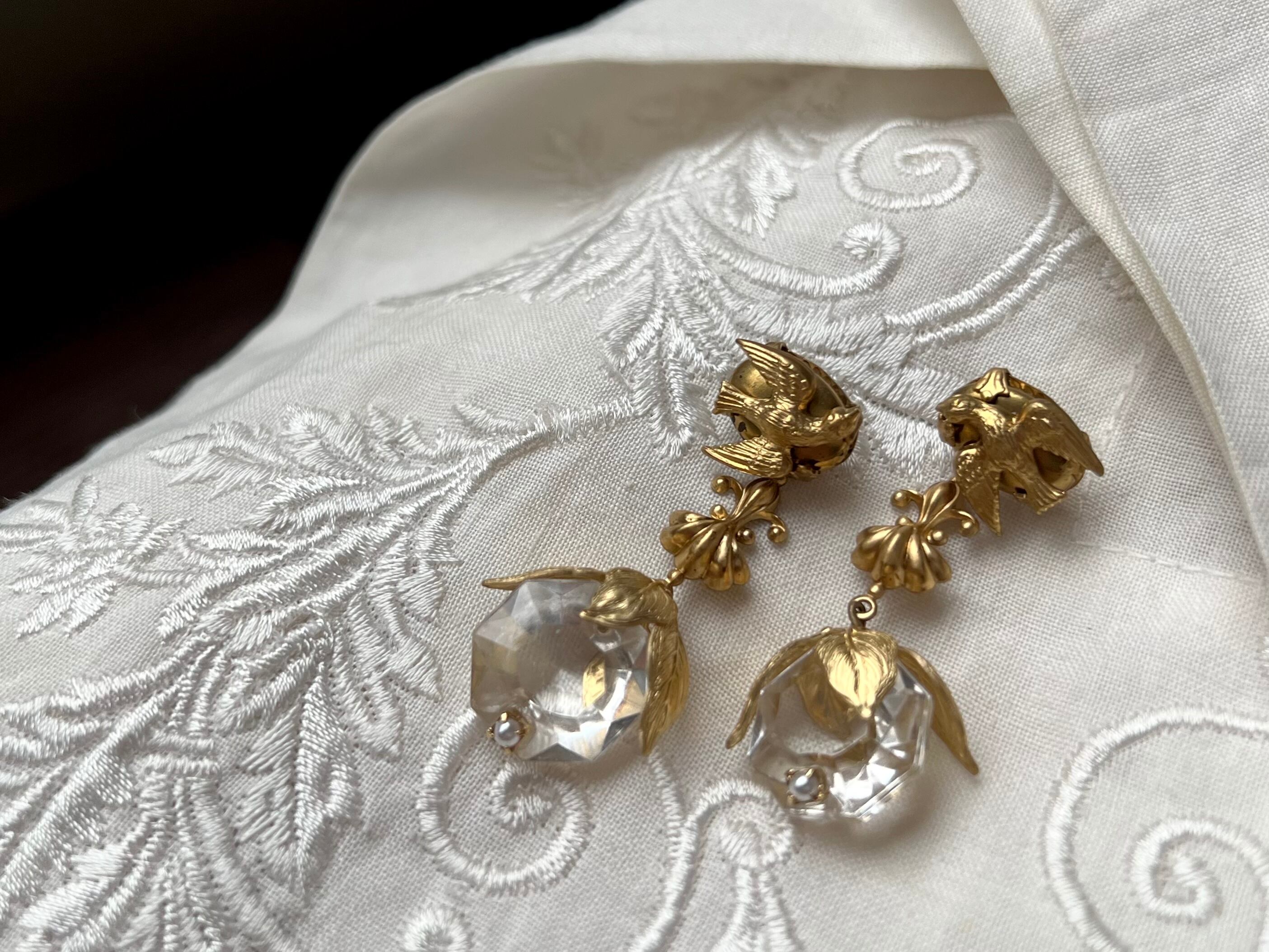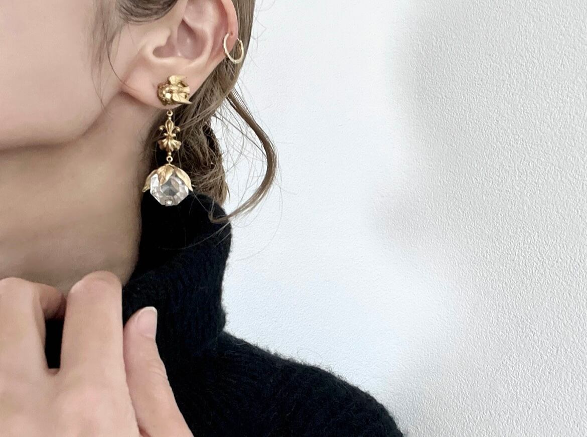 シャンデリアガラスや、アールヌーボーを思わせる曲線的な繋ぎも、カボションとよくマッチしており、大人っぽくもロマンチックな印象です。