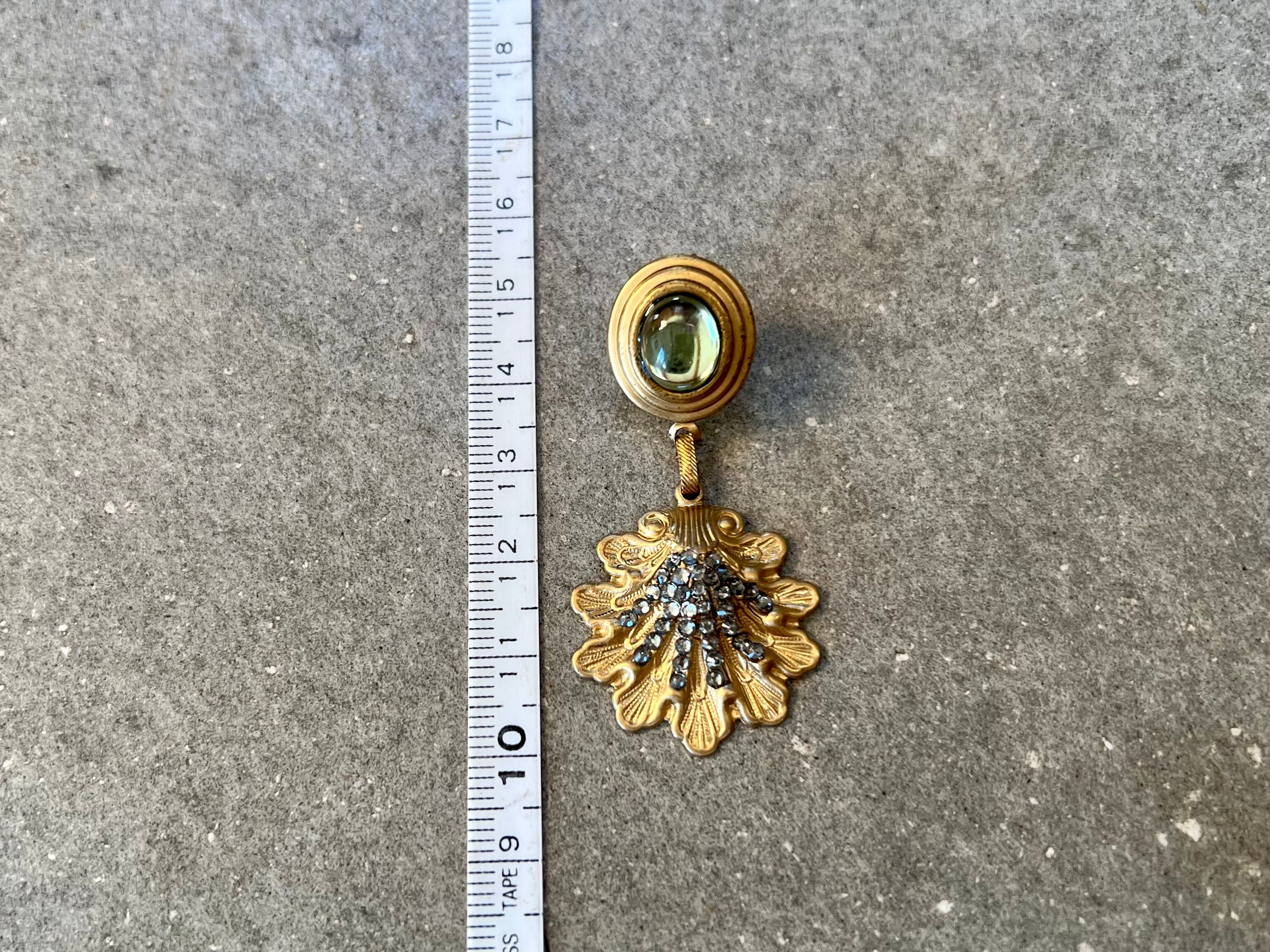 貝殻のようなモチーフパーツに贅沢にスワロフスキーを敷き詰め華やかに演出し、スモーキーガラスのカボションで大人っぽく引き締めました。