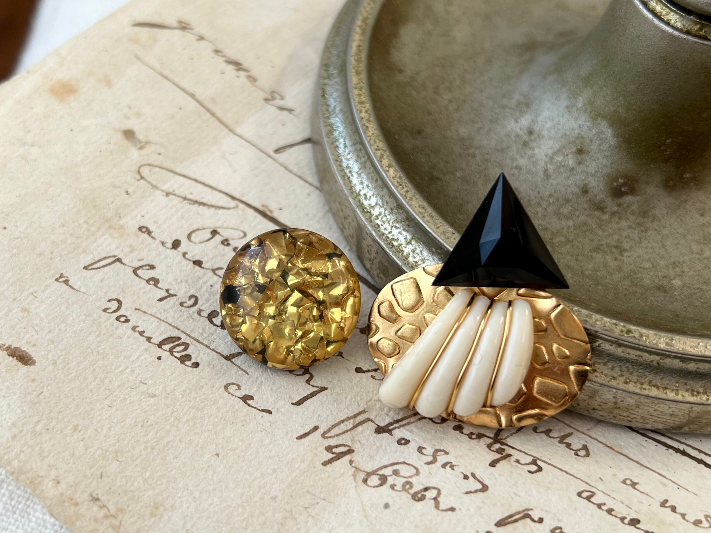 ヴィンテージパーツを使用してアシンメトリーなピアスを作りました。