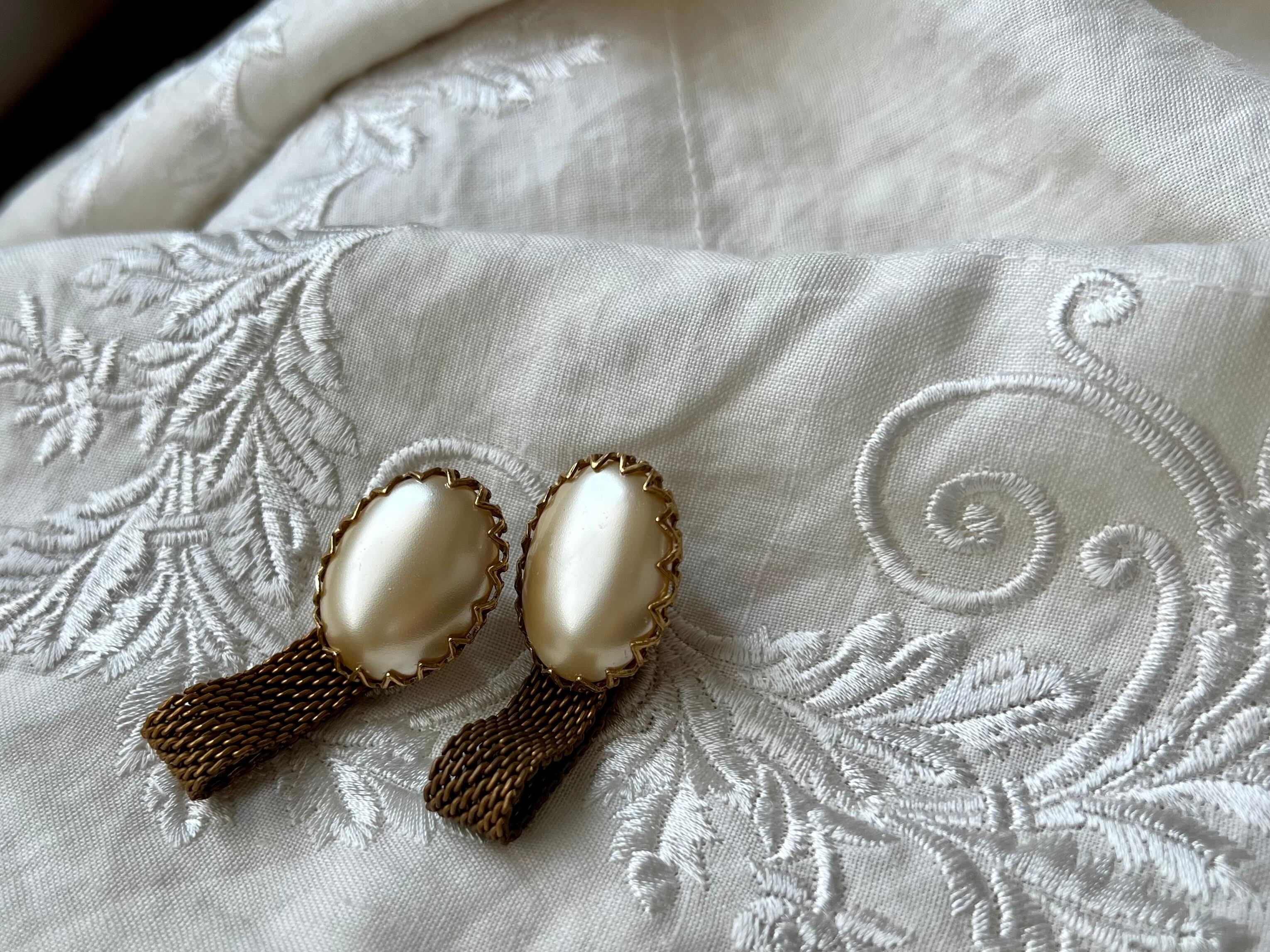 しっとりと柔和に艶めくガラスパールに真鍮リボンを合わせたシンプルなデザインですが、素材の美しさが際立つ仕上がりです。