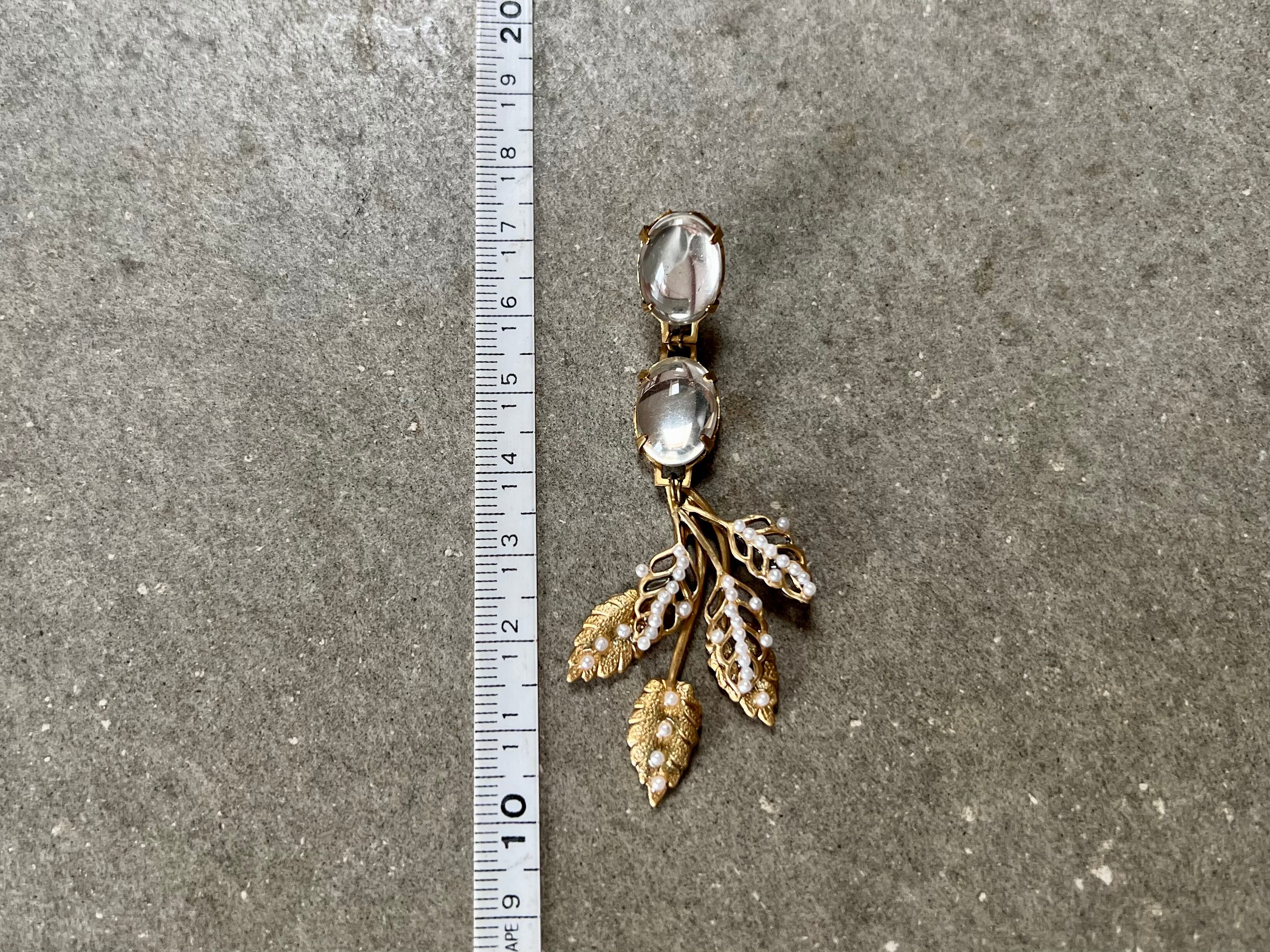鏡のようなガラスドームにボタニカルパーツを重ね、シードパールを敷き詰めたロマンチックなデザインです。