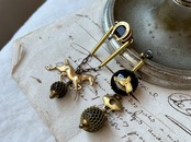 ヴィンテージパーツを使用してアシンメトリーなピアスを作りました。
