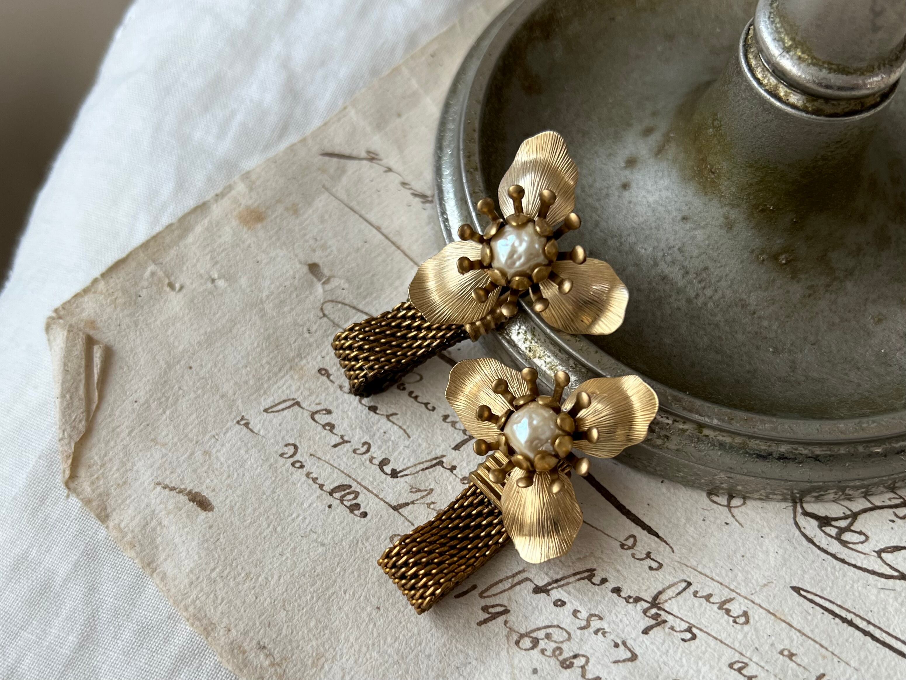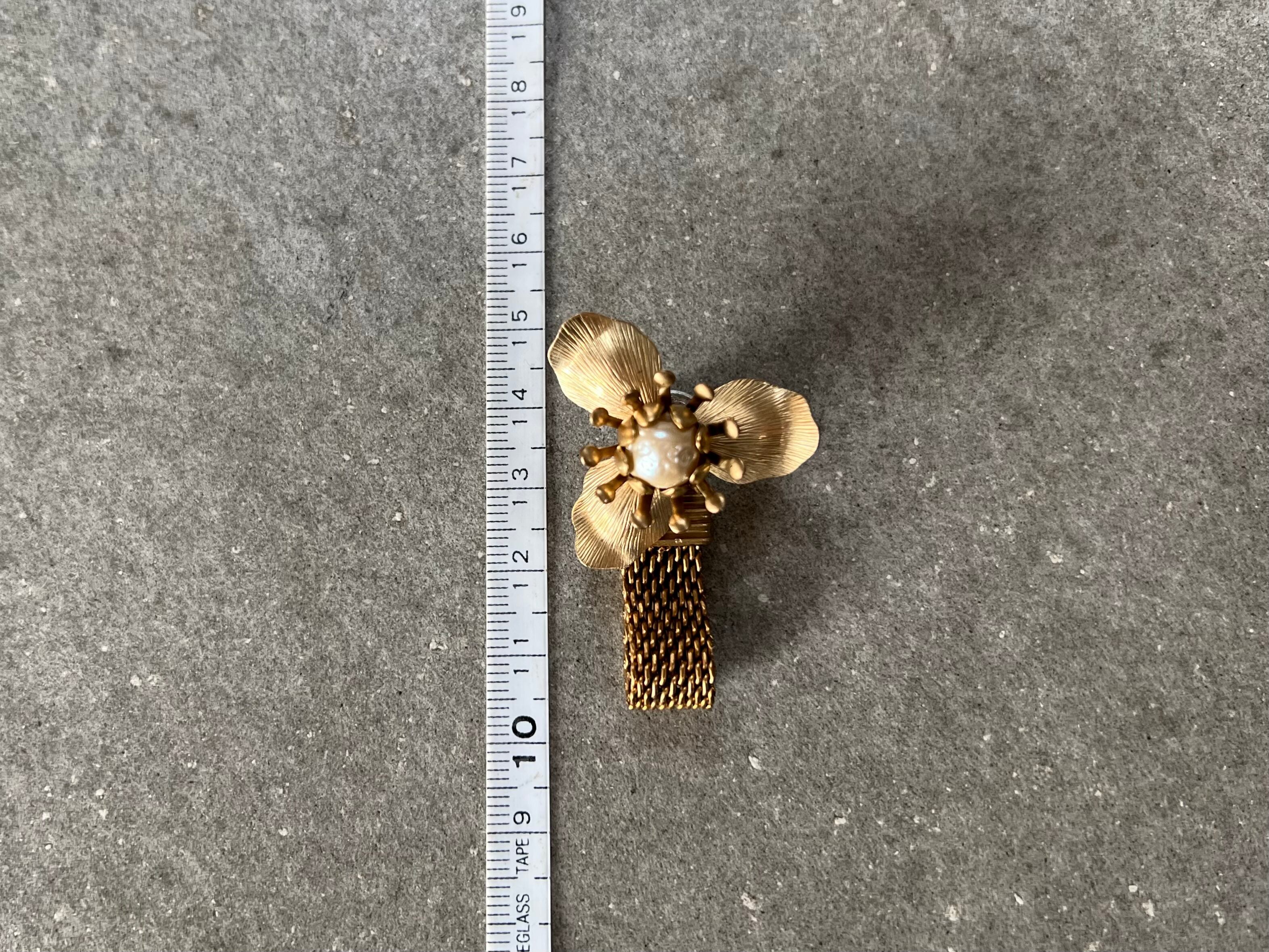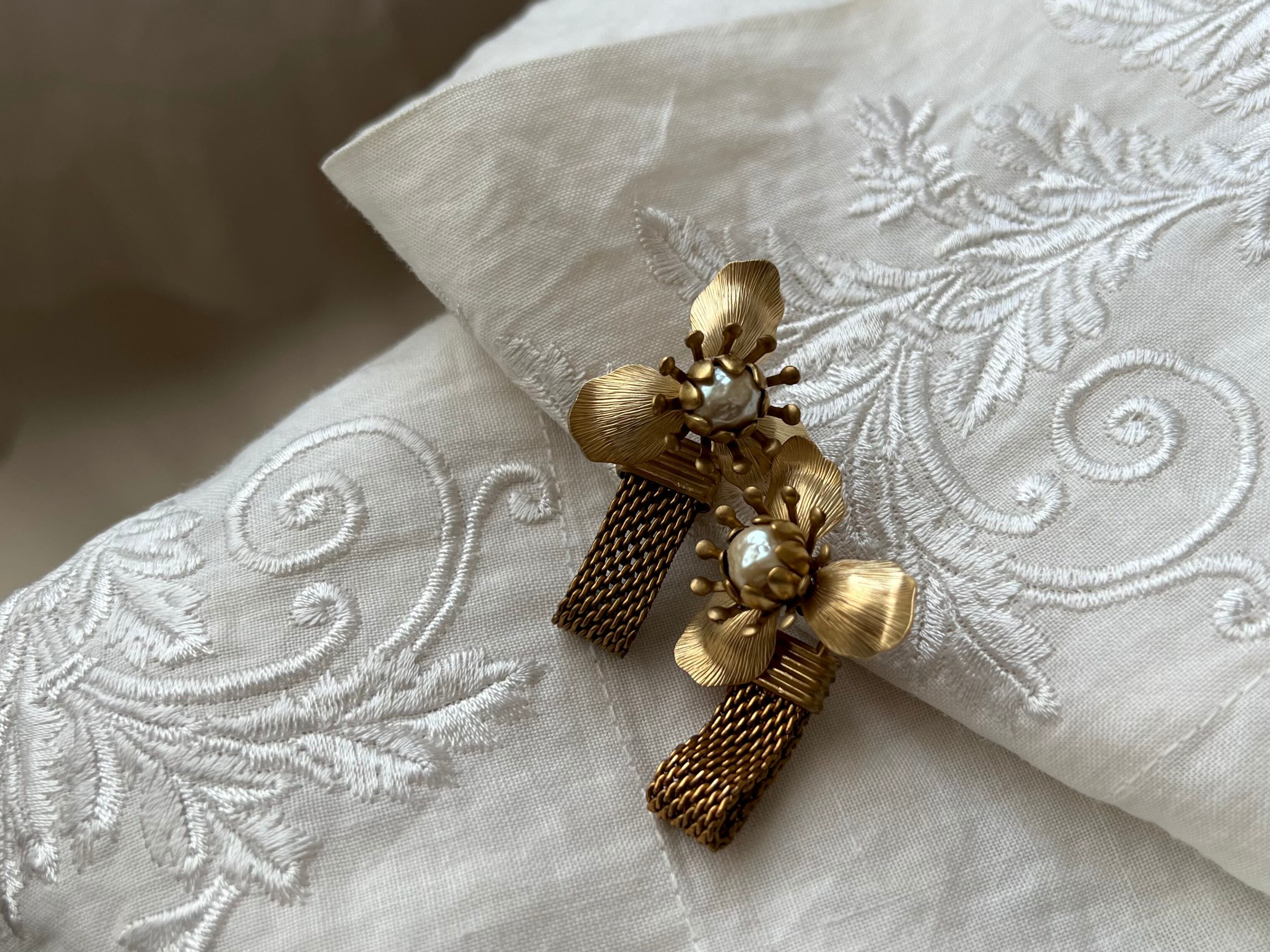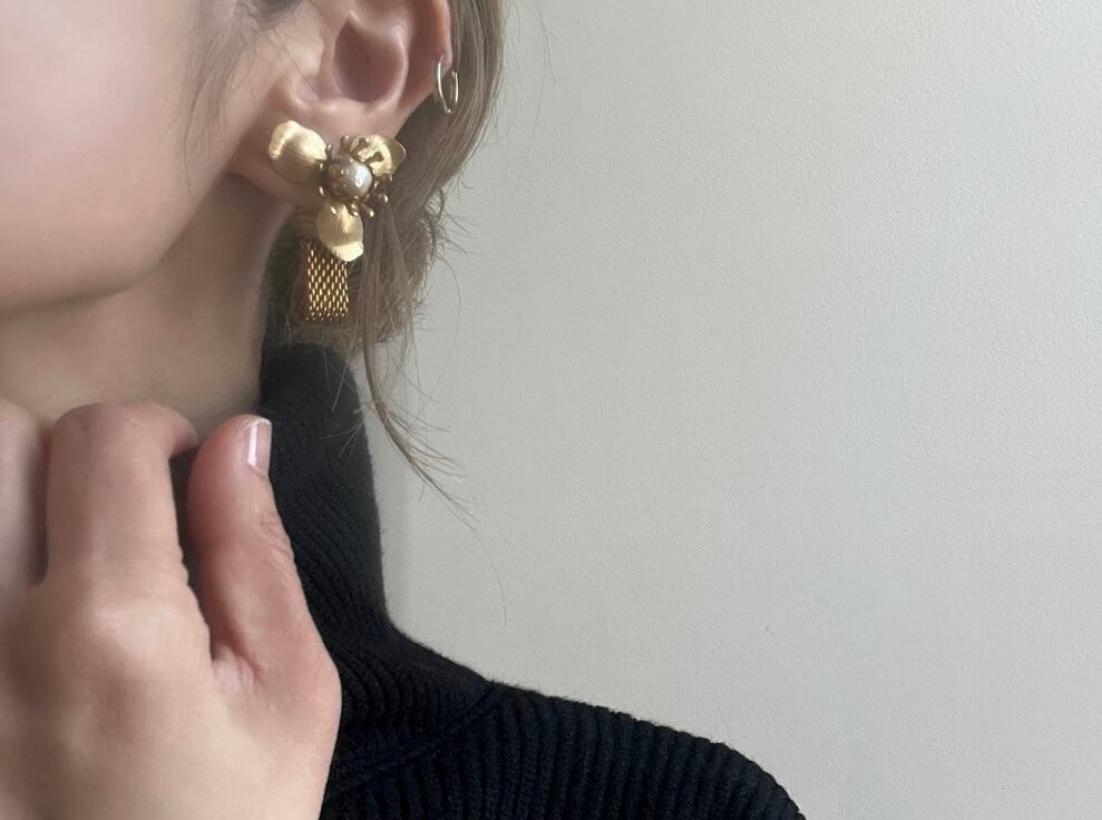 ボタニカルパーツにリボンチェーンを添えたシンプルなデザインですが、大ぶりのお花に存在感があり、シックな大人っぽさと女性らしい華やかの両方をお楽しみ頂けます。