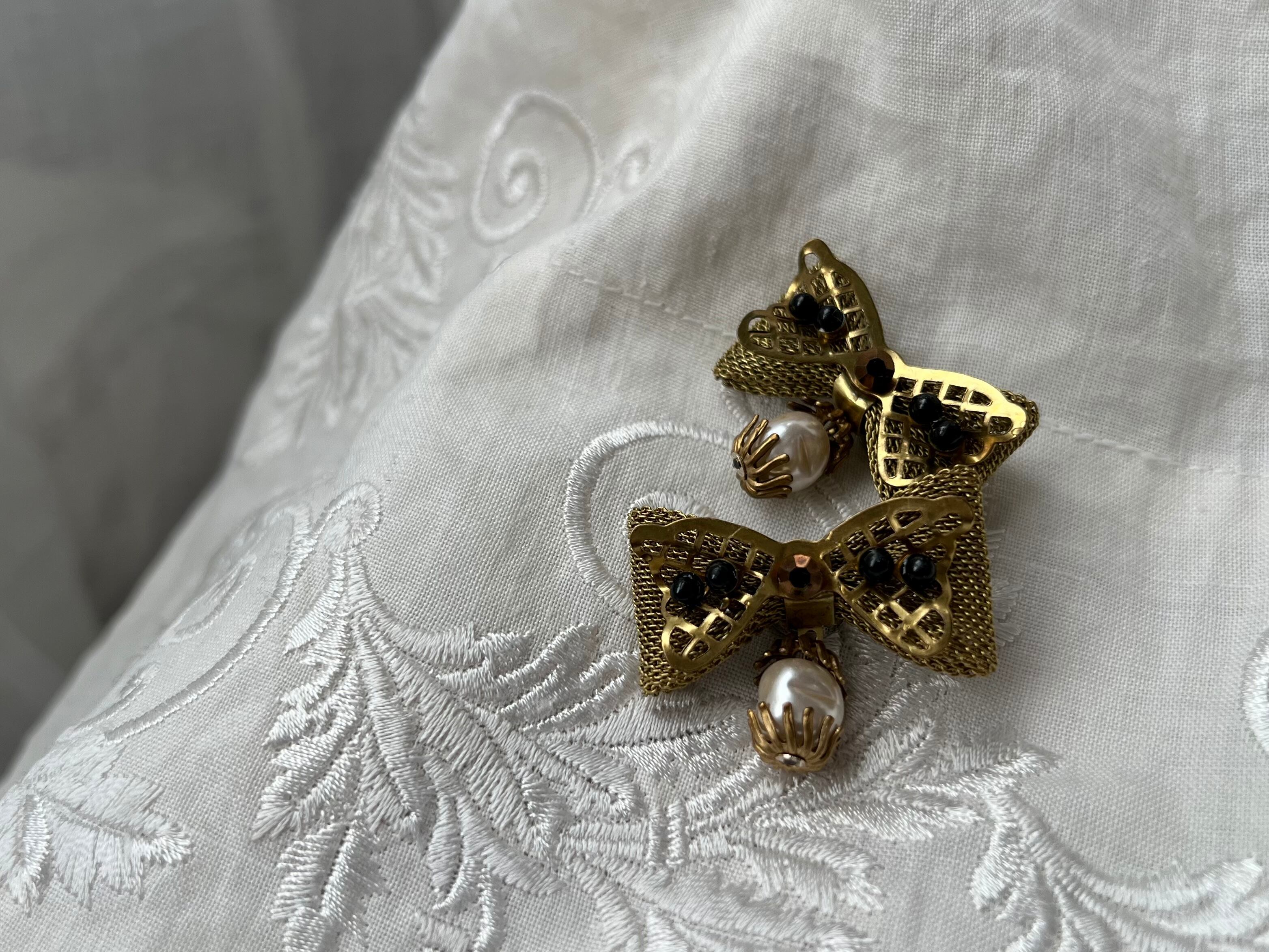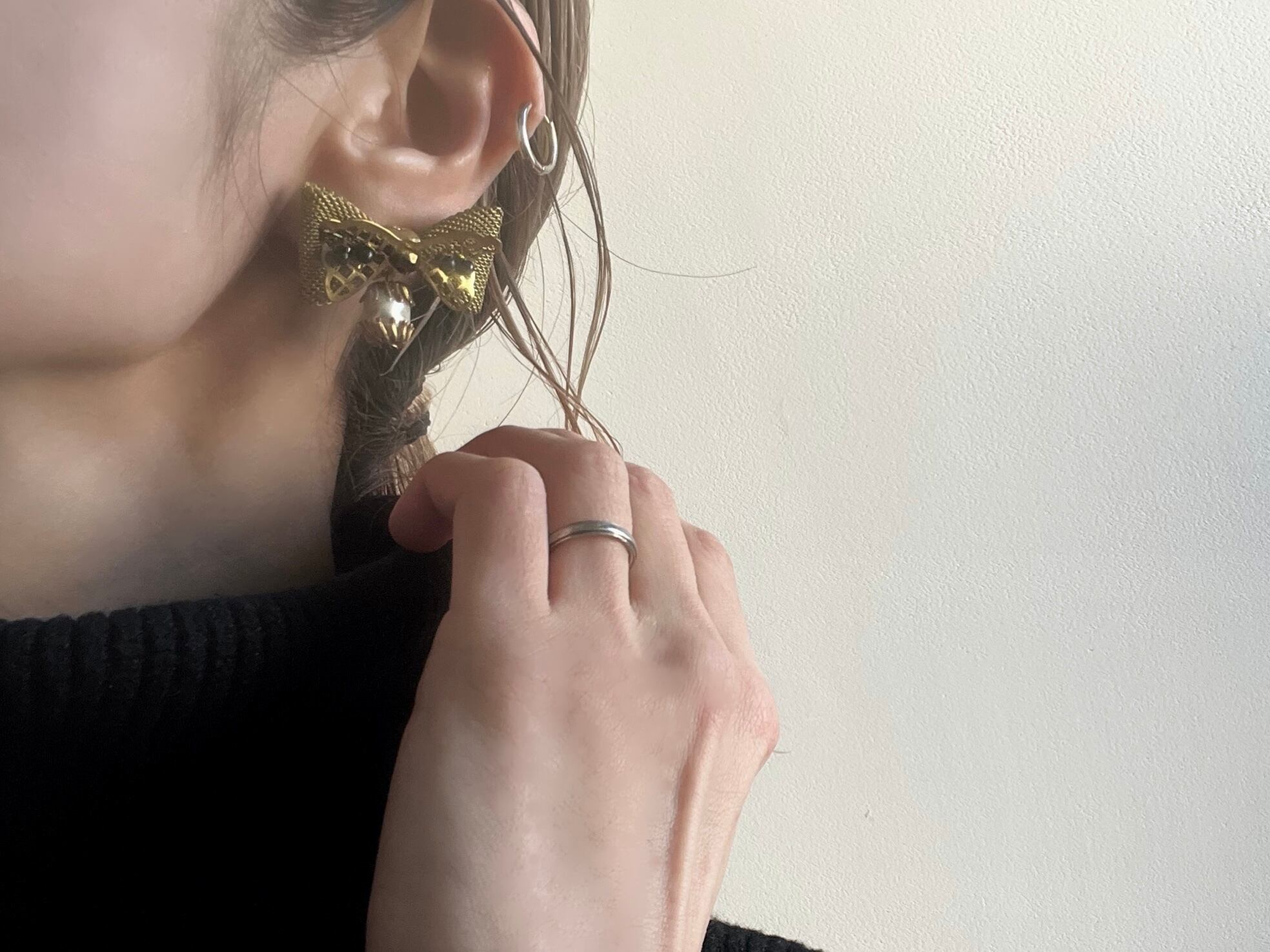大小のリボンモチーフを重ねてスワロフスキーを飾った可愛らしいデザインですが、シックな色味で大人っぽく仕上げました。