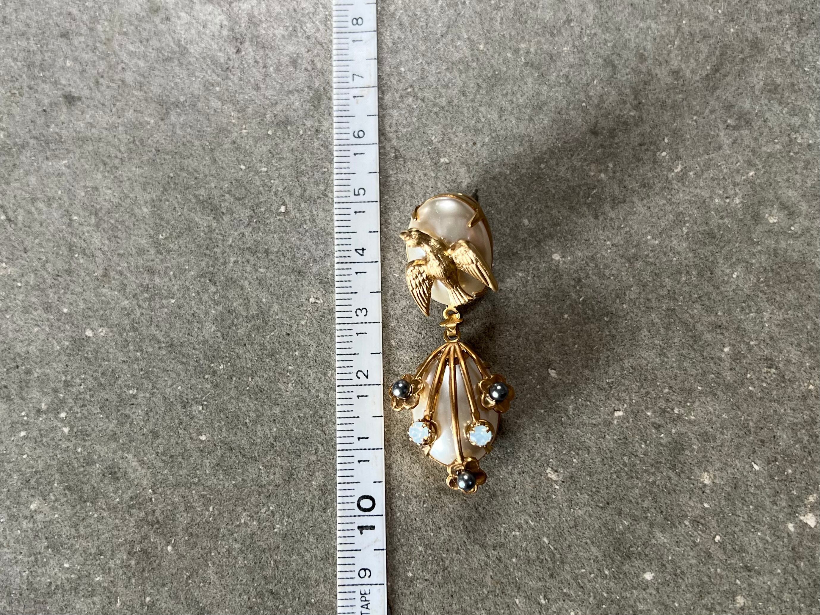ガラスパールにミリアムハスケルのドーブやボタニカルパーツを添え、スワロフスキーを散らしたロマンチックなデザインです。