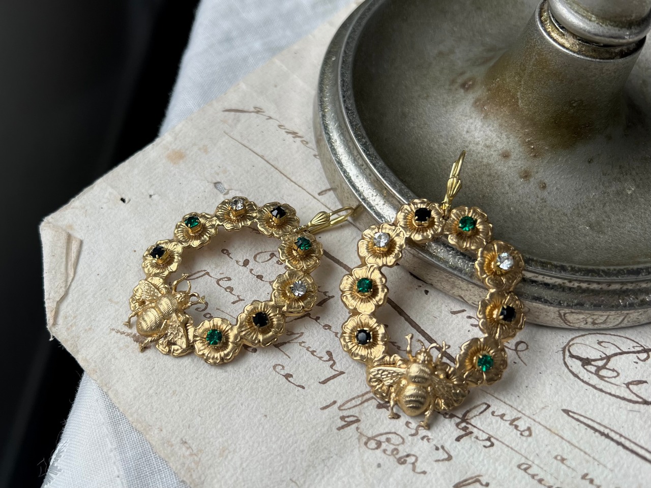 フラワーフープにスワロフスキーを散らして、蜂のチャームを添えました。