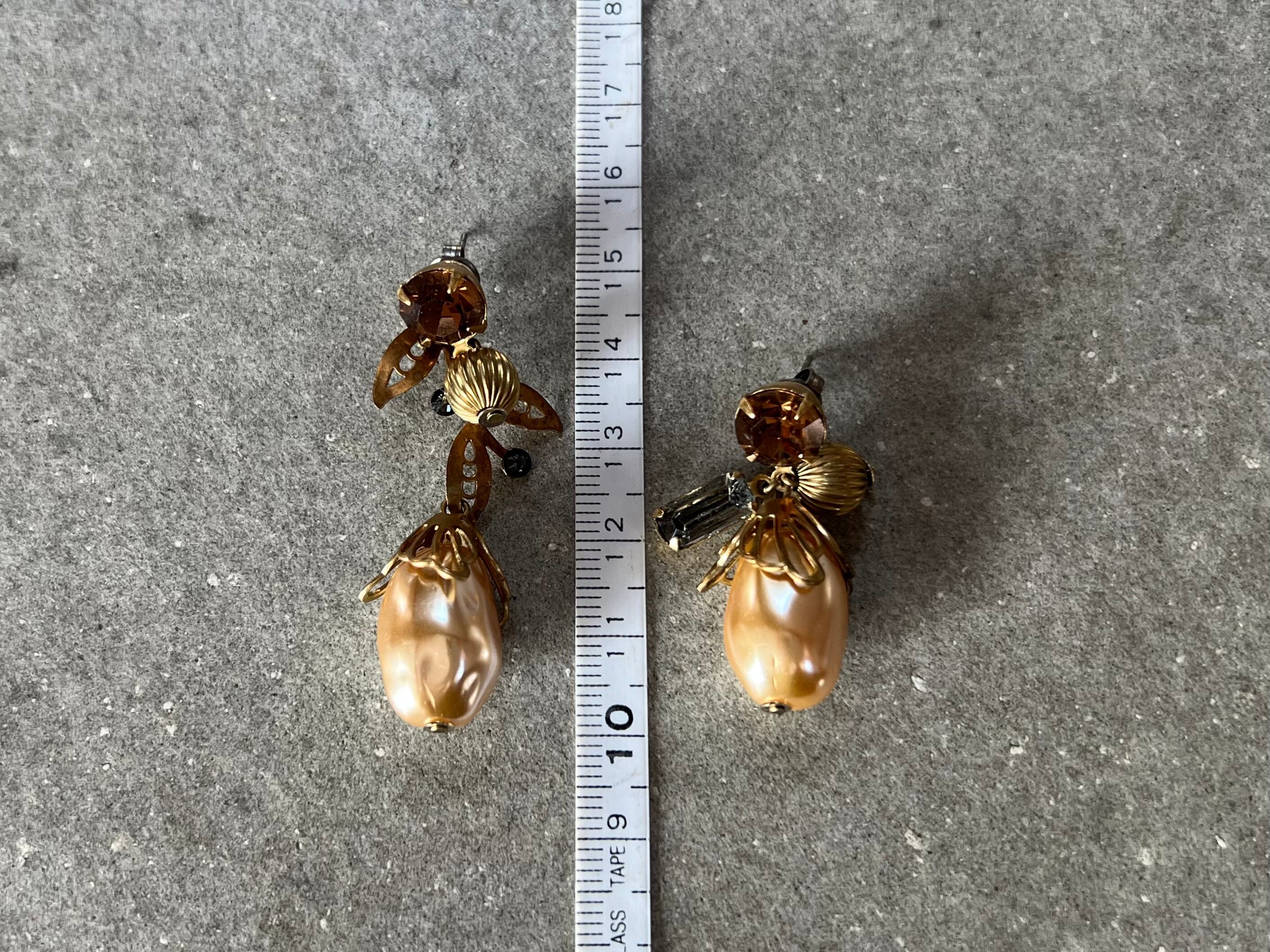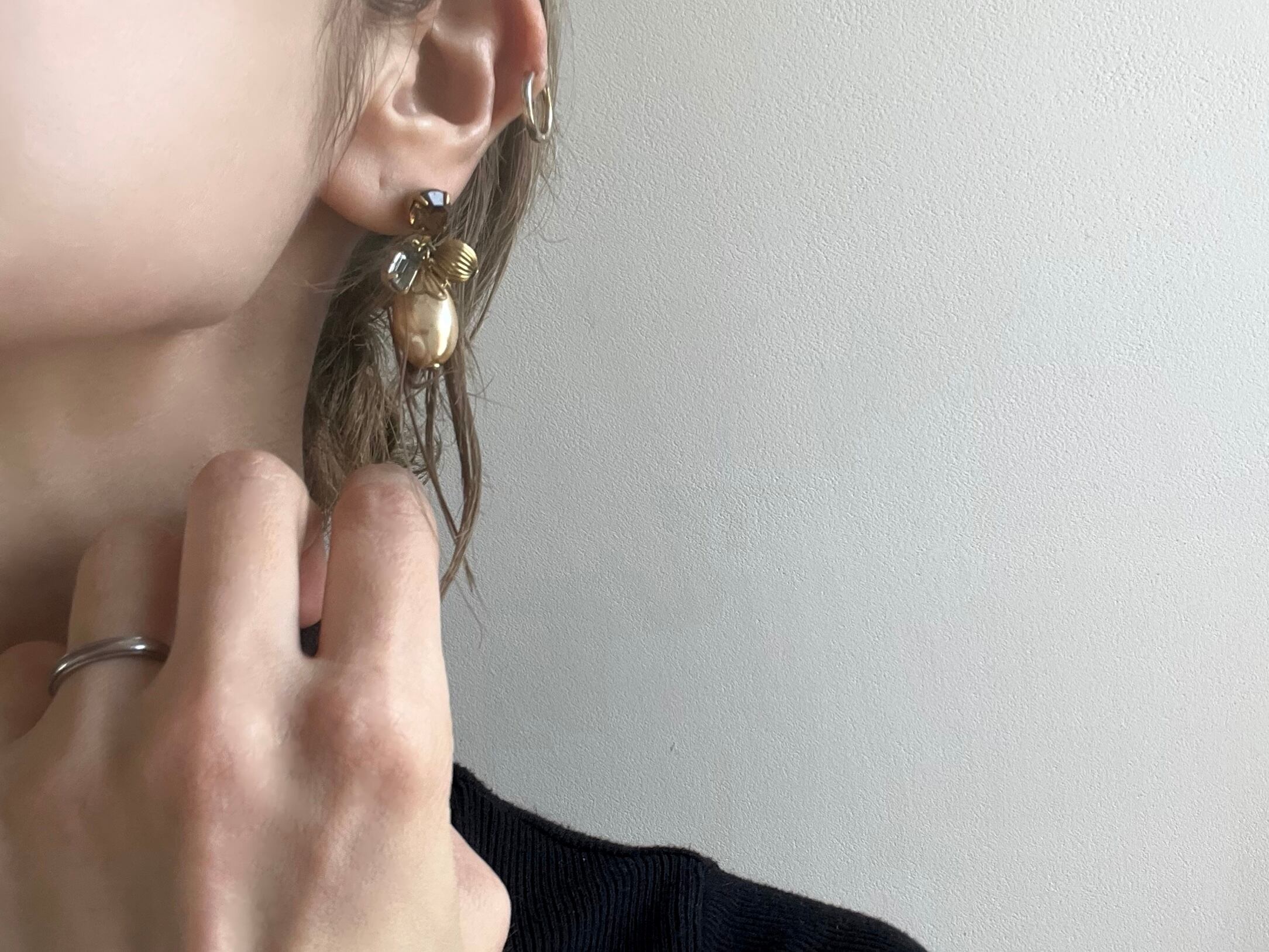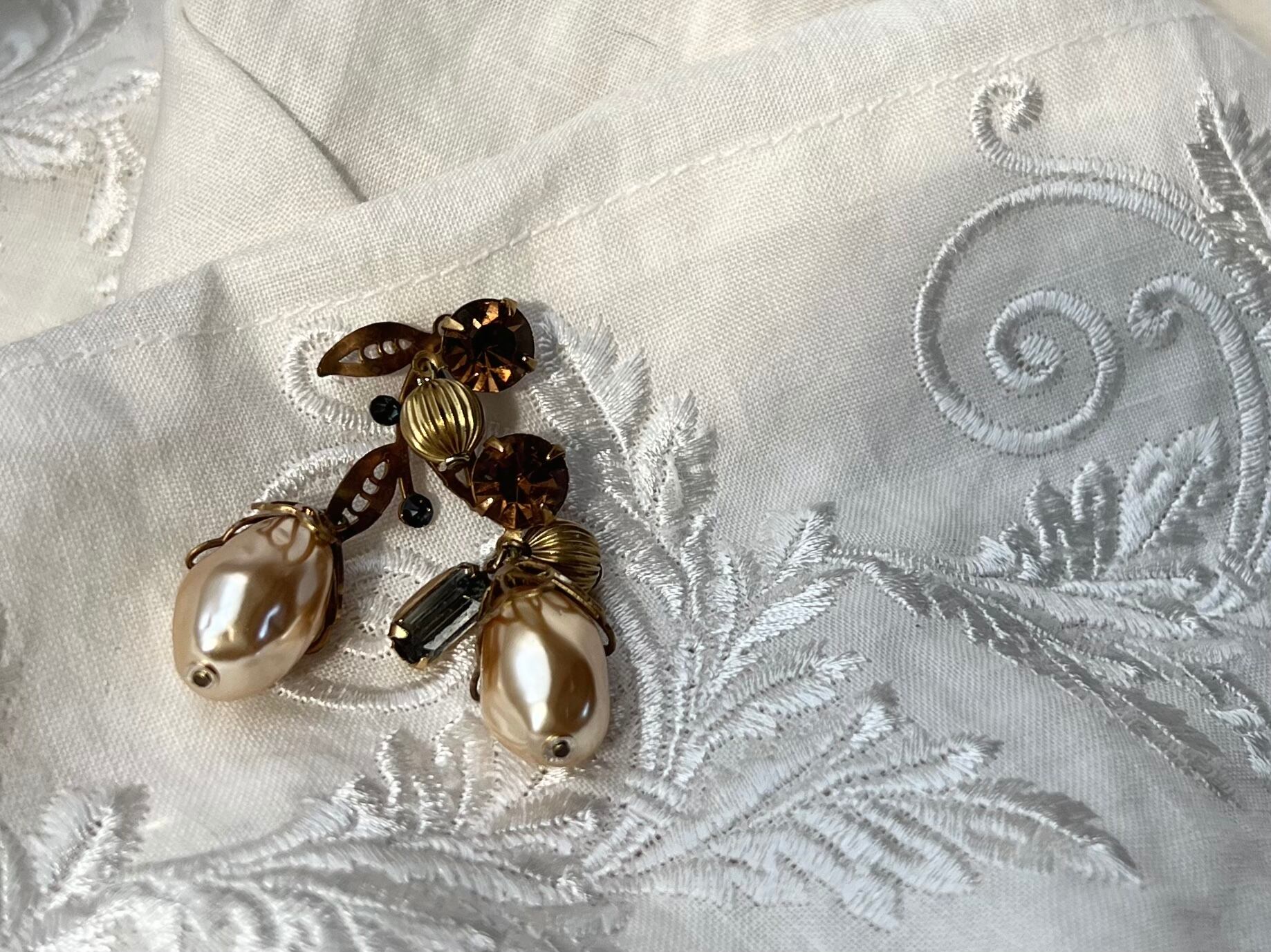 ヴィンテージパーツを使用してアシンメトリーなピアスを作りました。