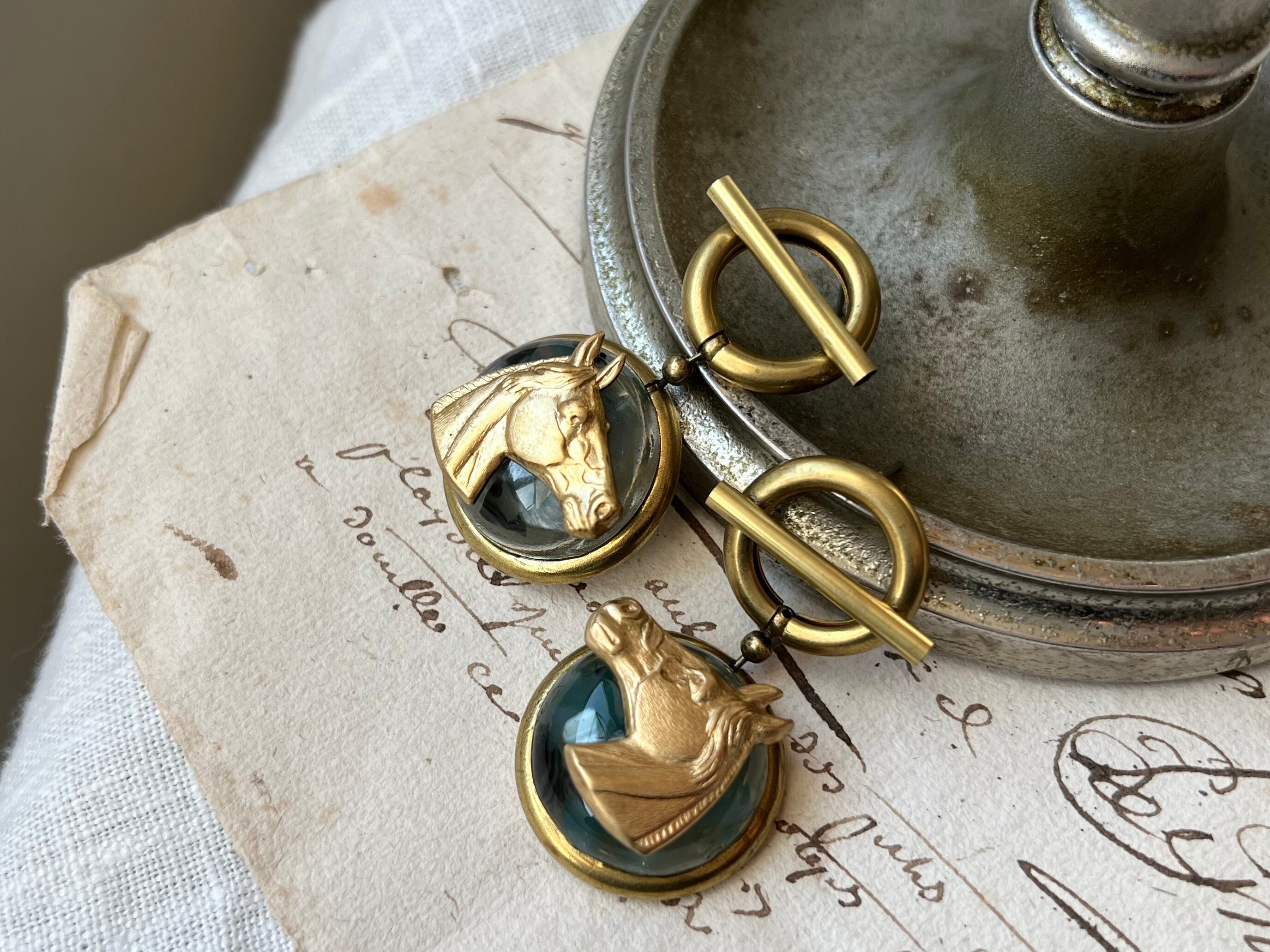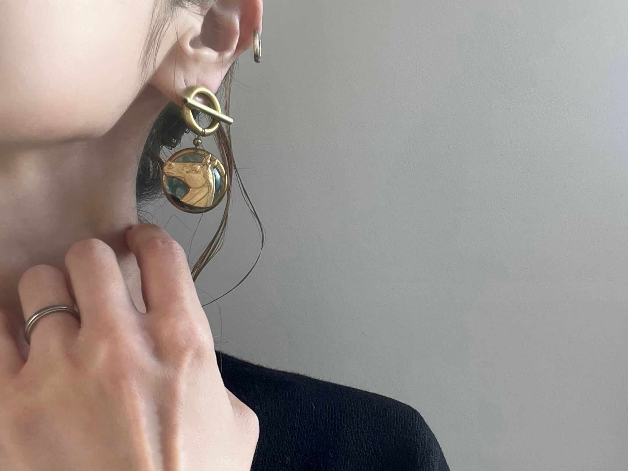 2連のフープにブラスバーやホースヘッドを添えた個性的なデザインで、グレーがかったスモーキーブルーのベースが全体をシックな雰囲気にまとめています。
